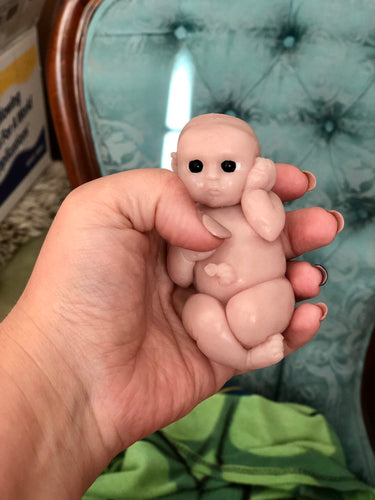 Full body silicone mini baby doll Nena in super soft blend with 3D skin effect (flesh colour) 4" eyes open - blank (unpainted)