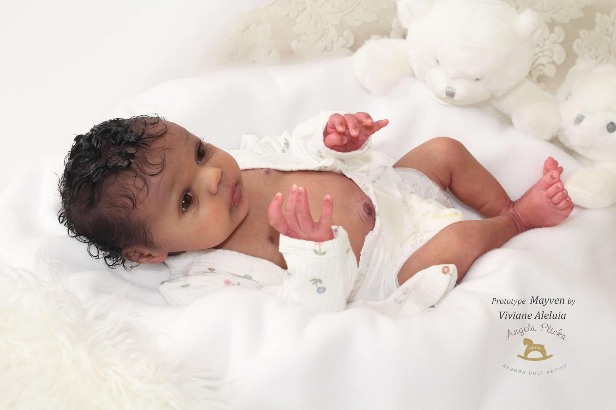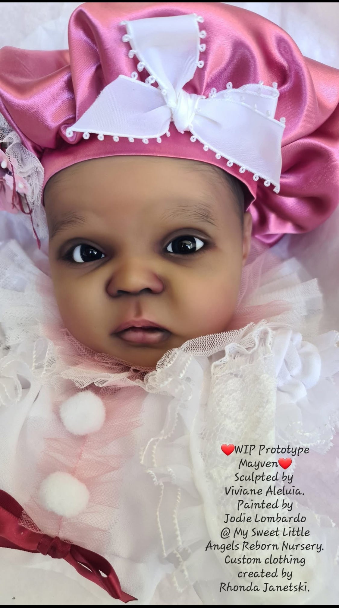 Baby Mayven was sculpted by Viviane Aleluia & produced by myself with full reproduction rights. She makes 18” - 20” baby with full arms & full legs (depending on the body size).