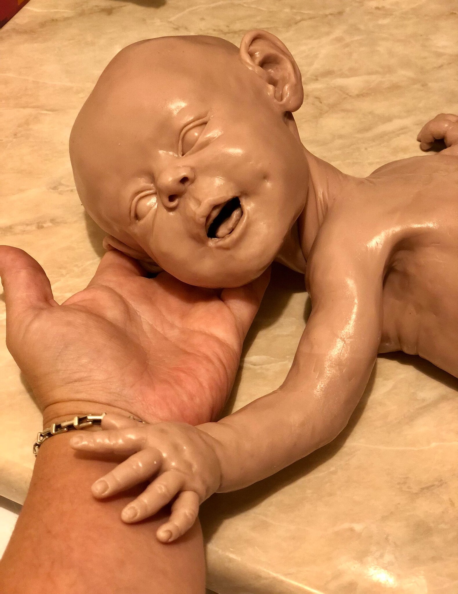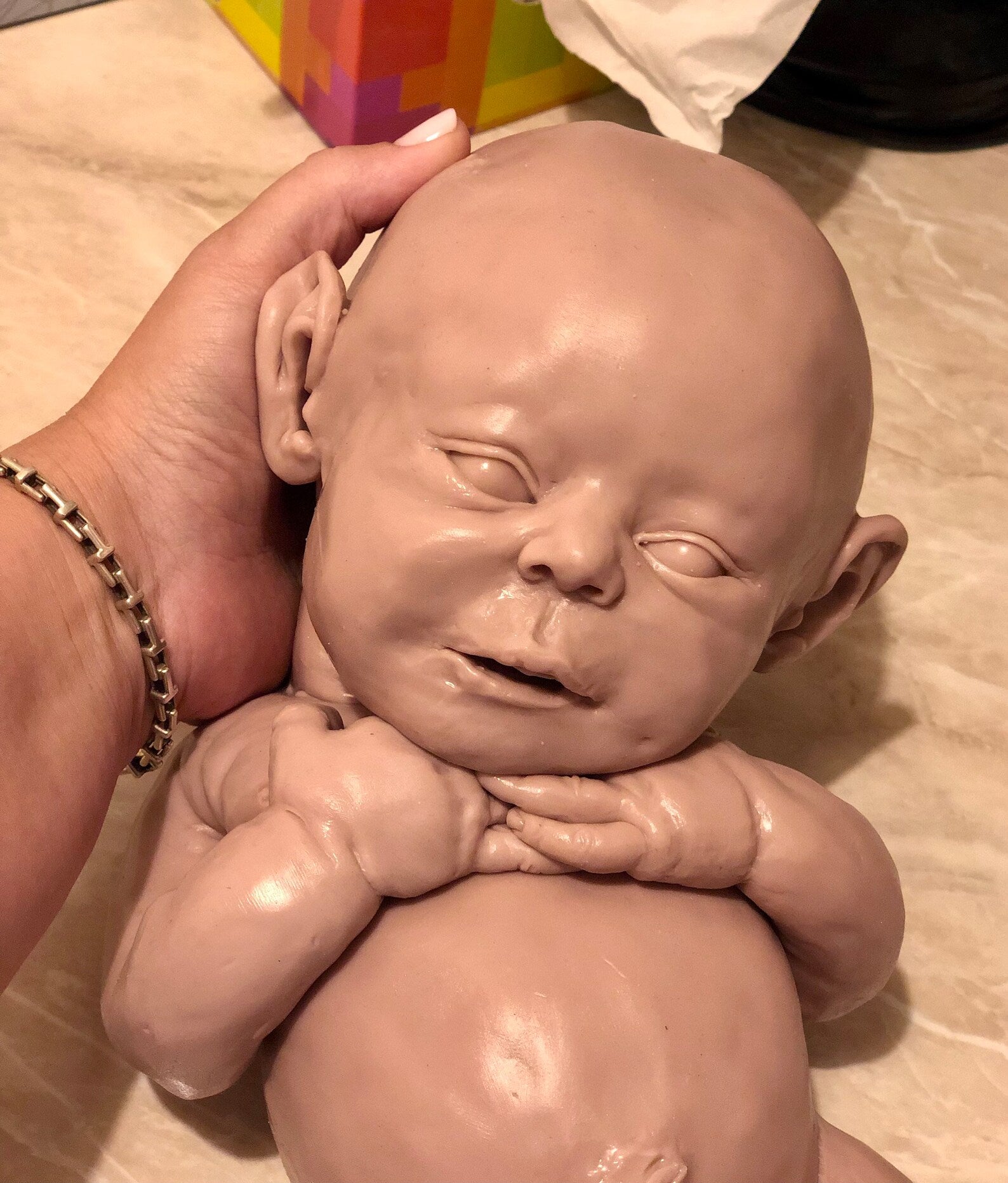 This baby was sculpted by me from scratch, molded, produced in platinum cure super soft silicone blend - marshmallow silicone- it is much more realistic & soft, softer than ecoflex 20 & ecoflex10.