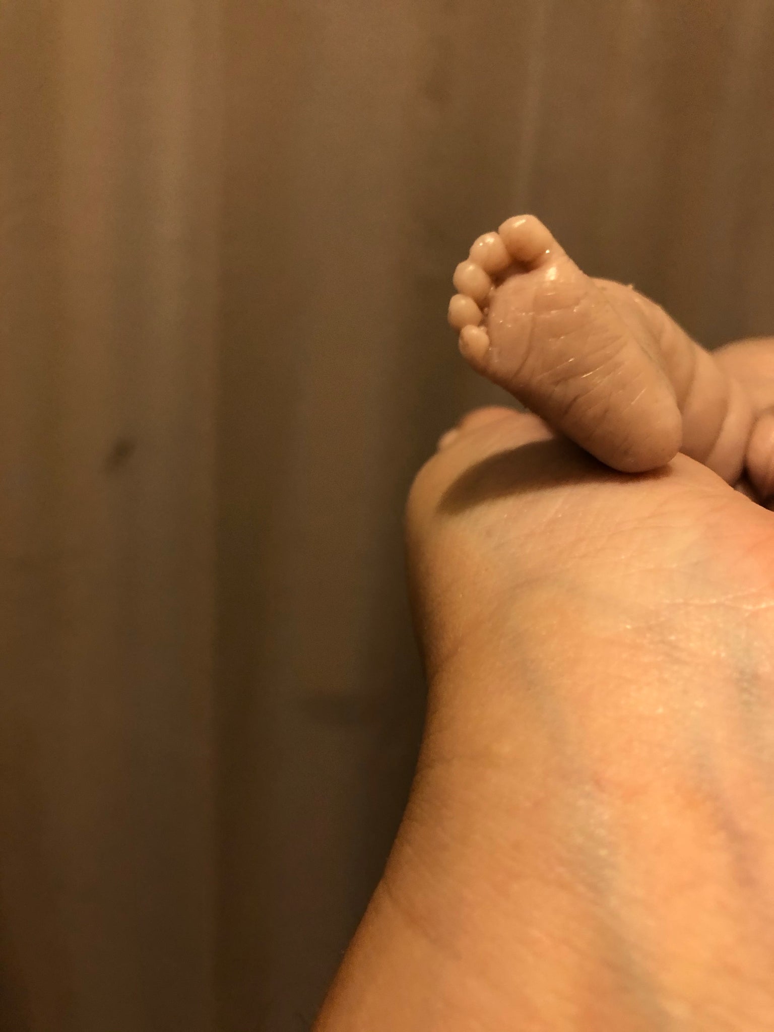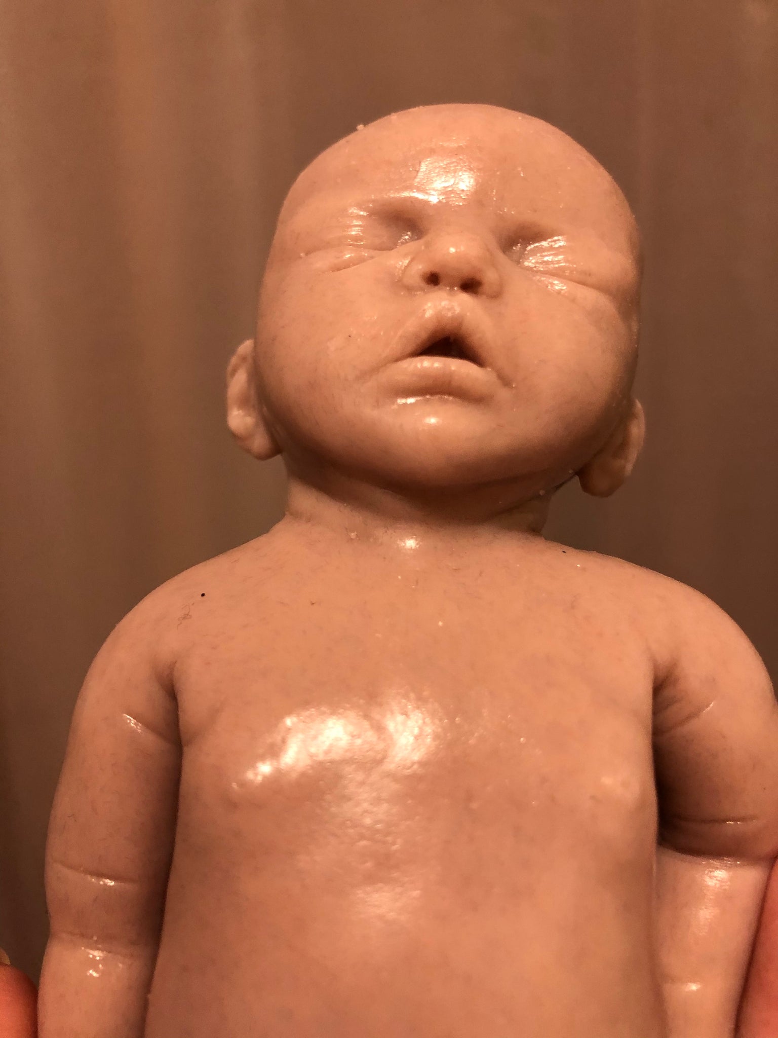 This baby was sculpted by Viviane Alleluia, molded, produced in platinum cure silicone blend with full reproduction rights by me, Nadine Dolotova.