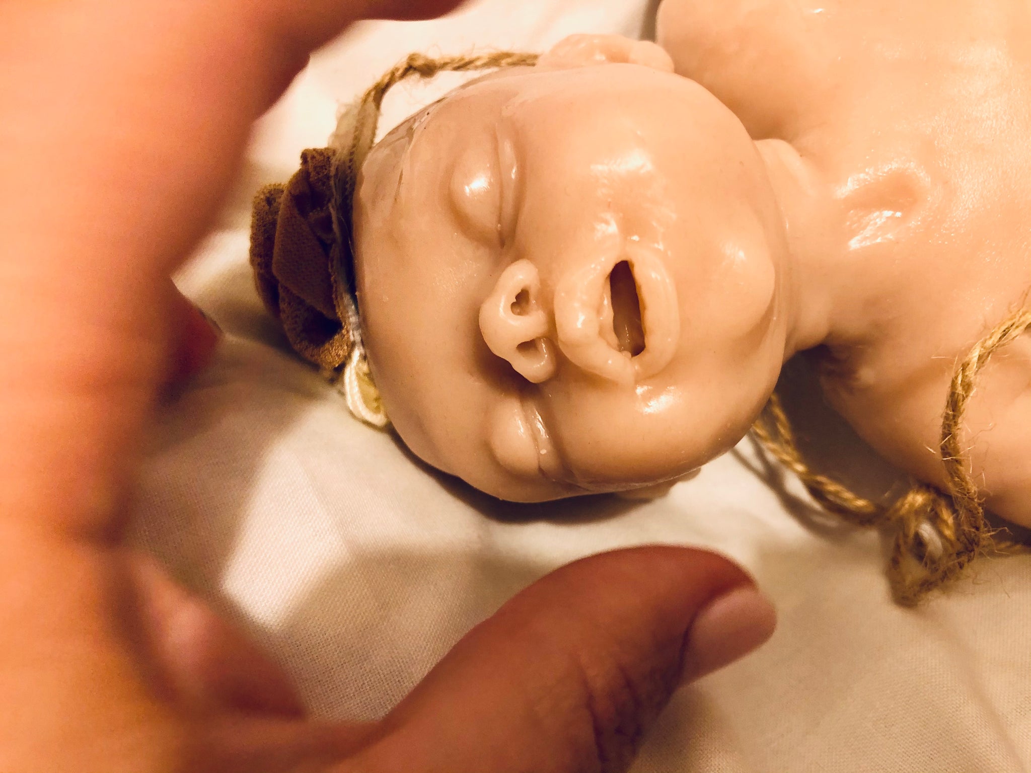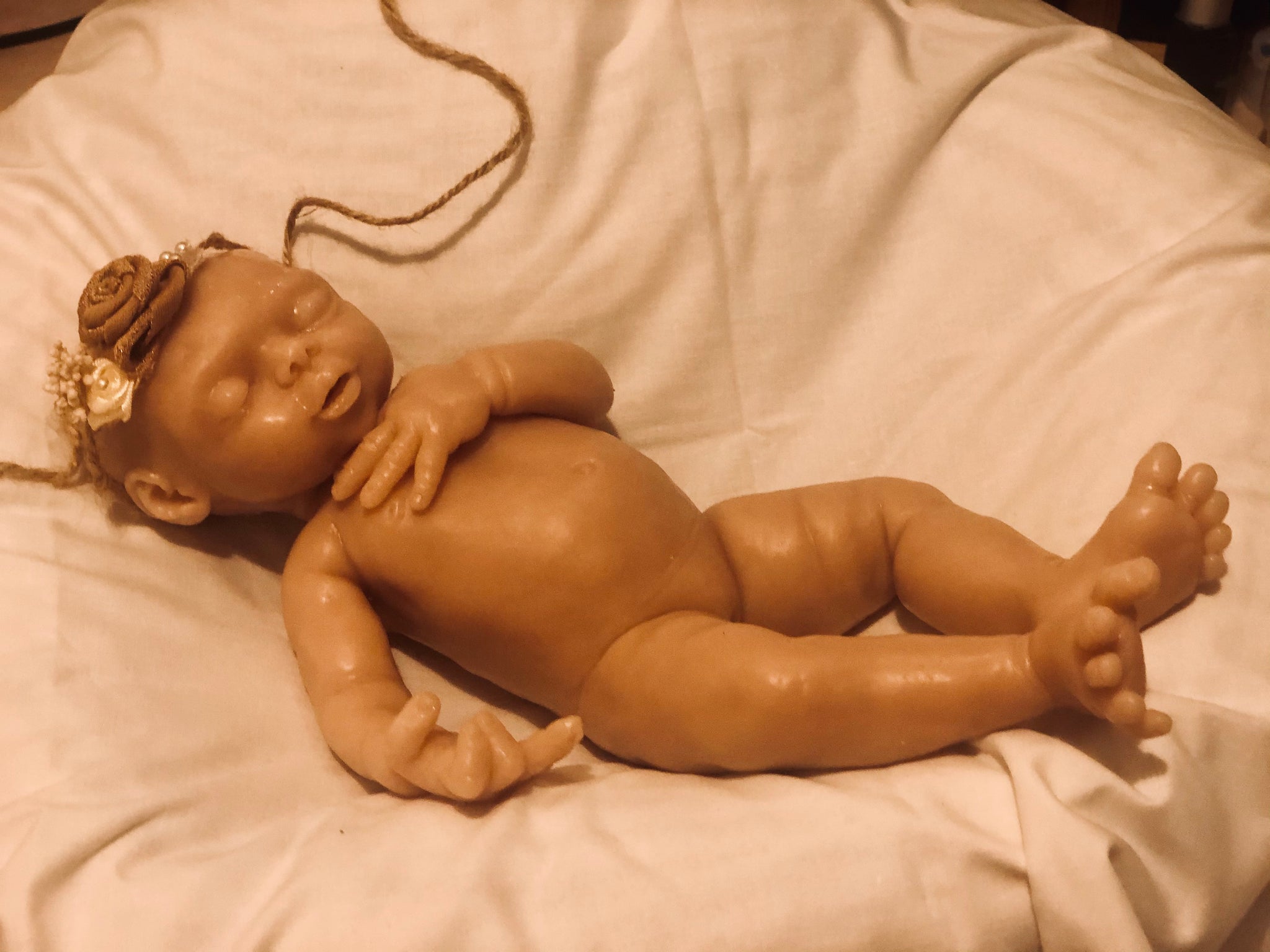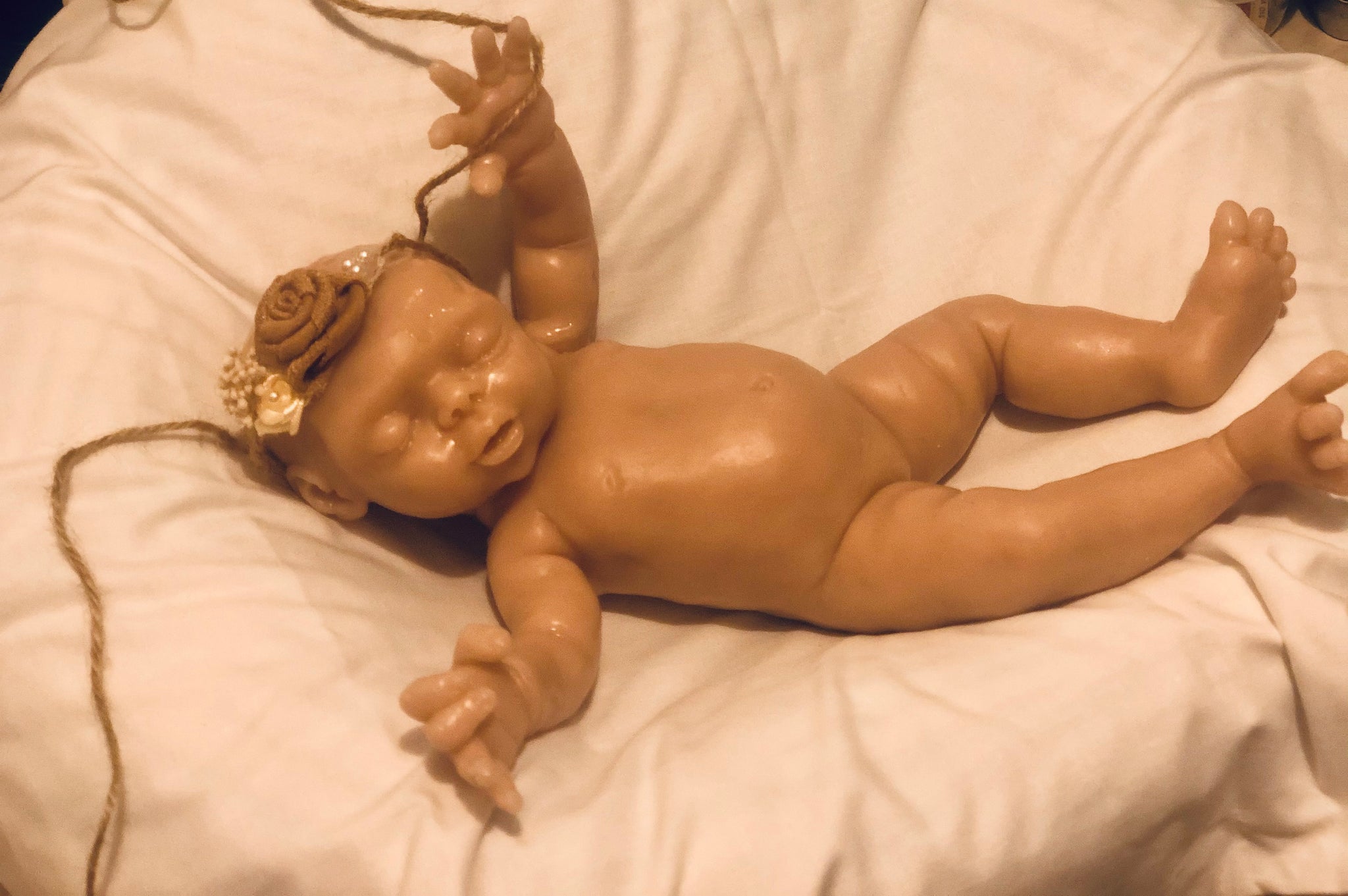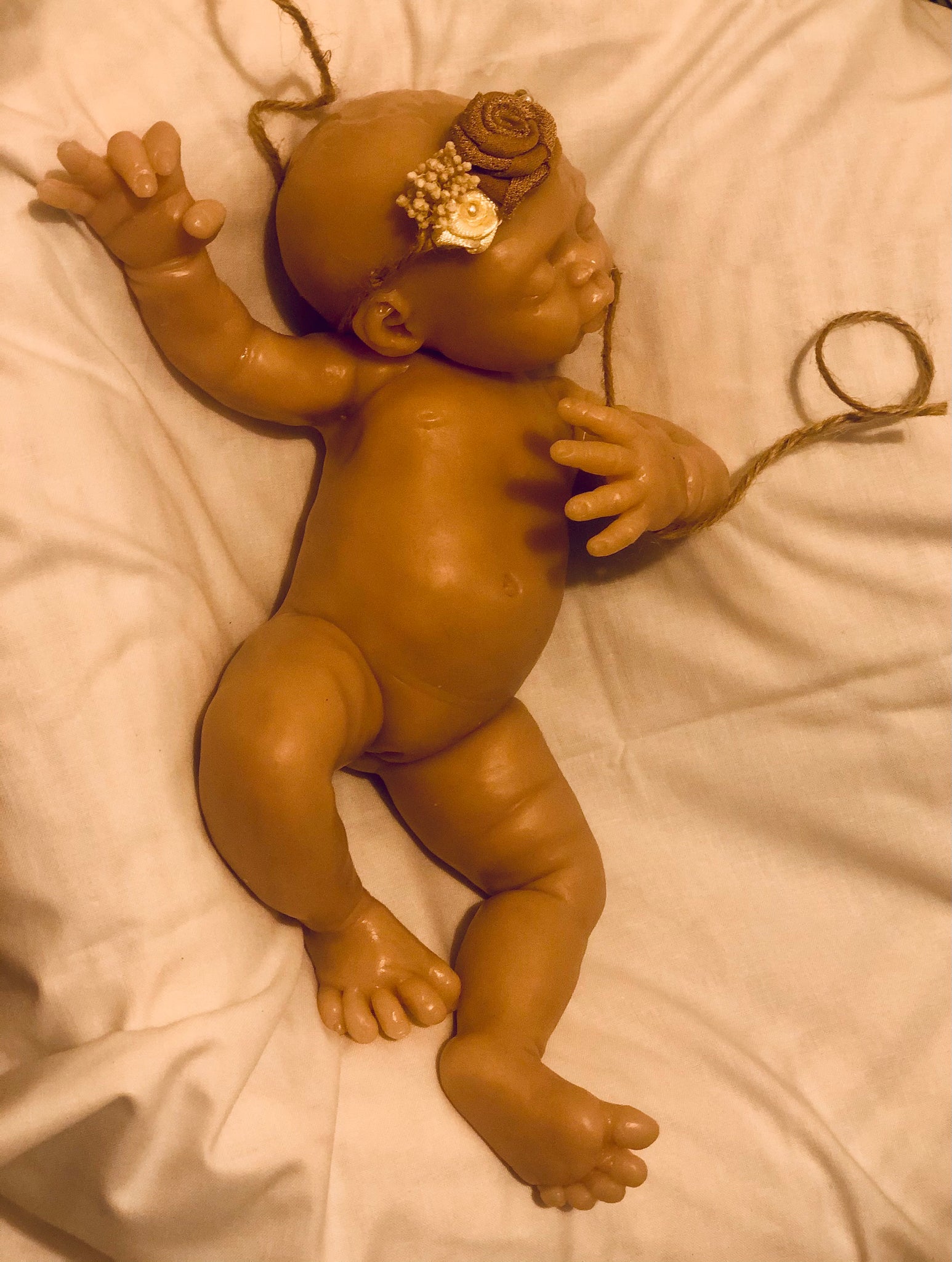 This baby was sculpted by me from scratch, molded, produced in platinum cure silicone blend.