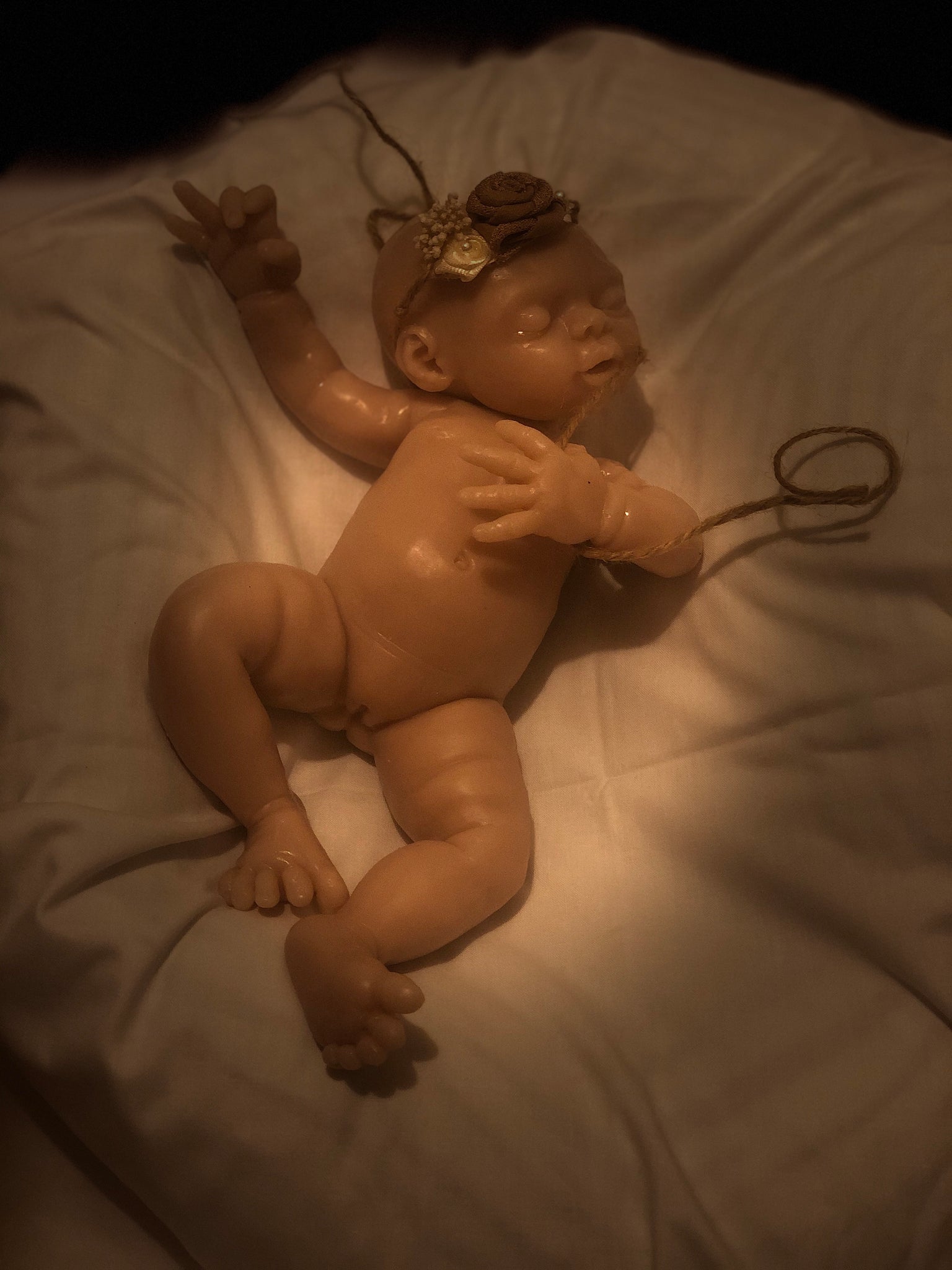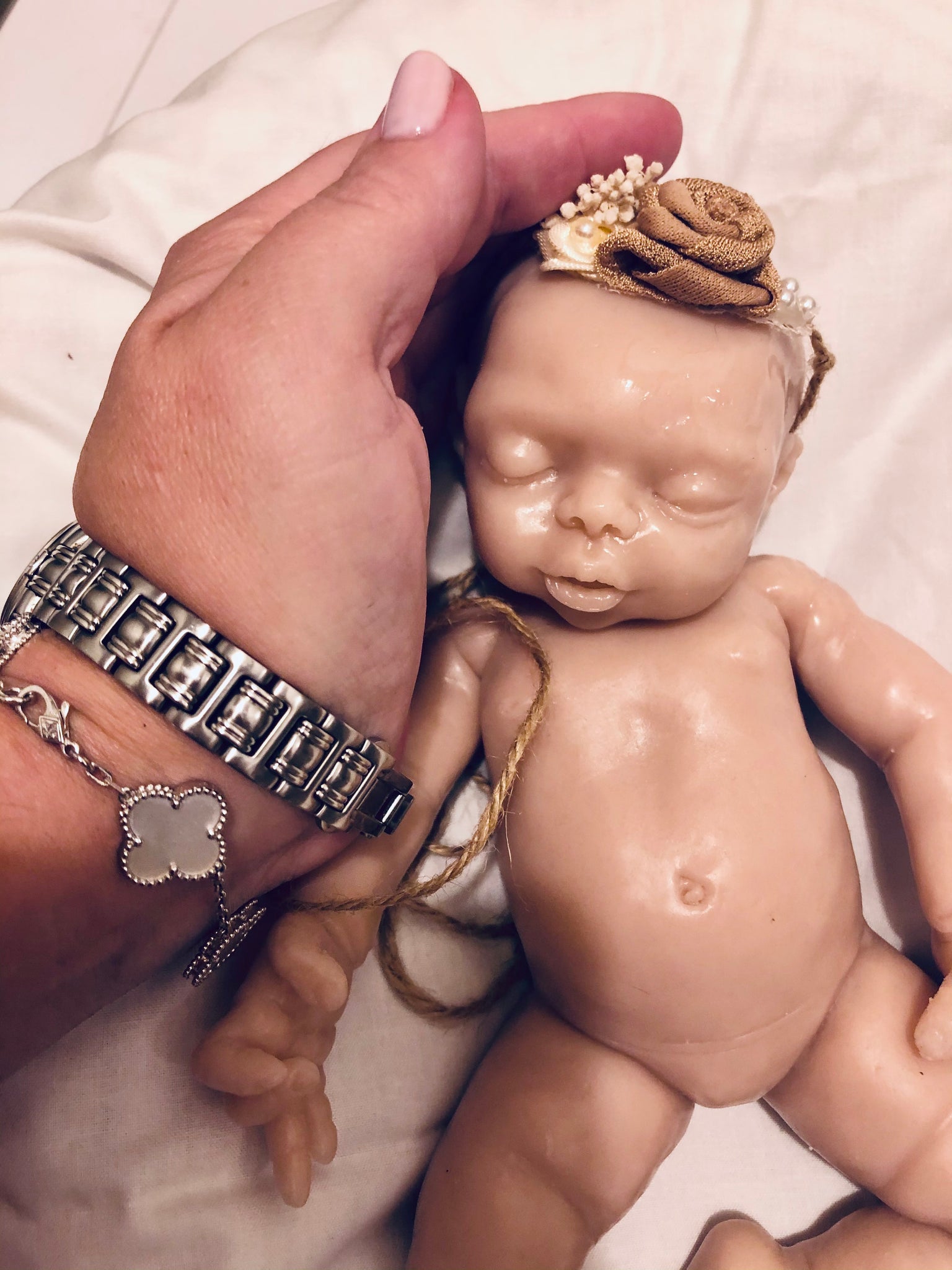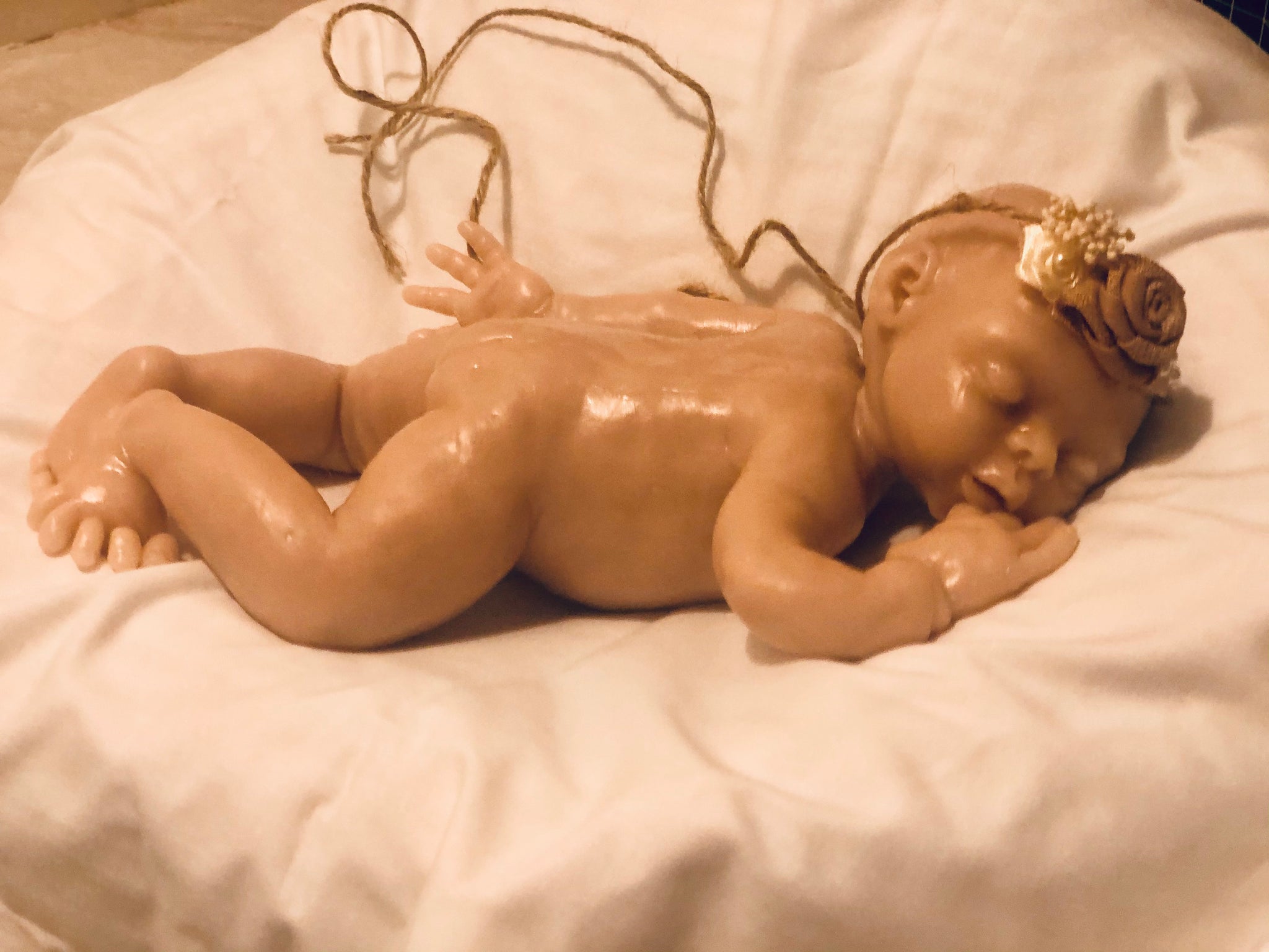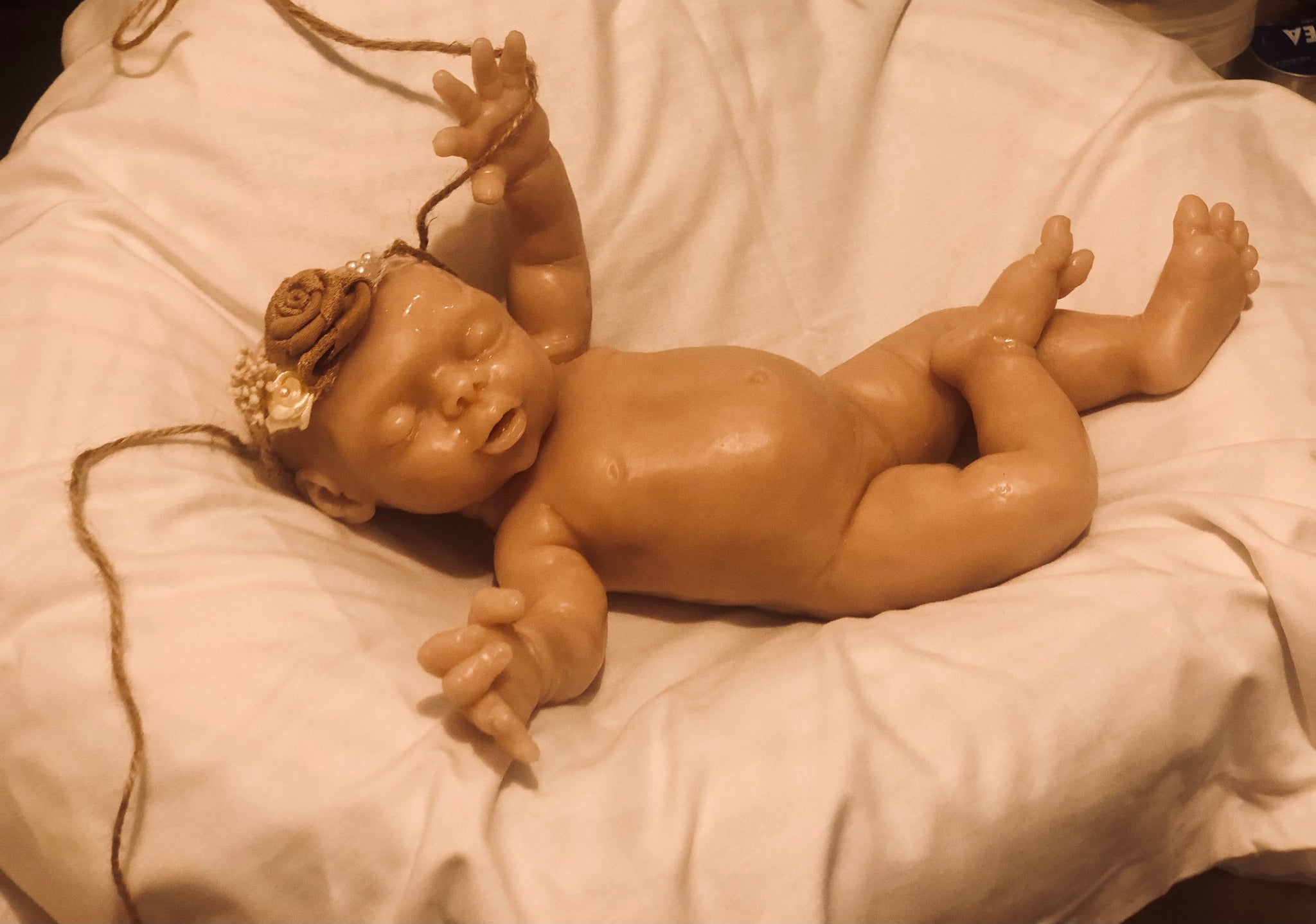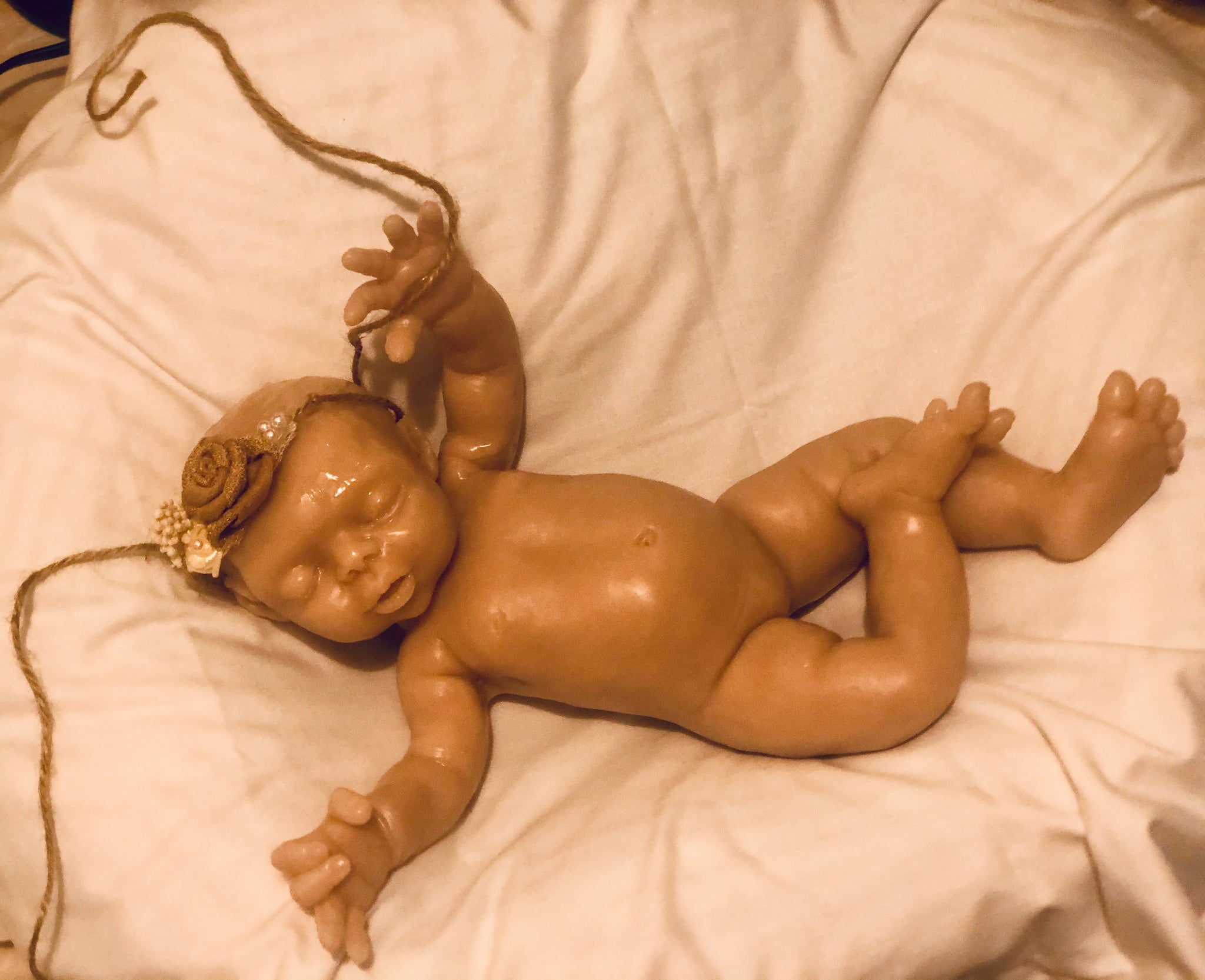 This baby was sculpted by me from scratch, molded, produced in platinum cure silicone blend.