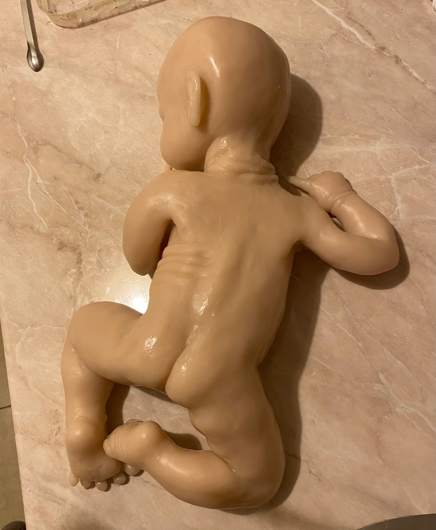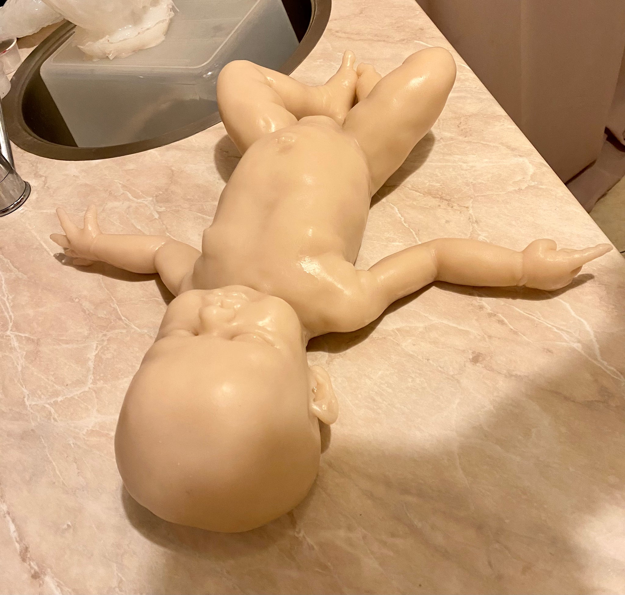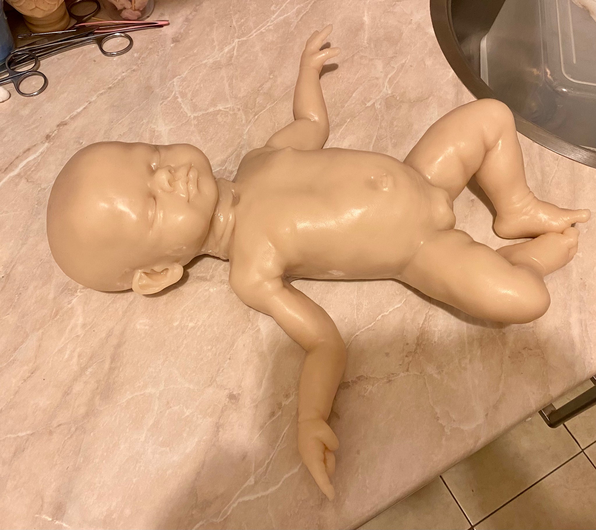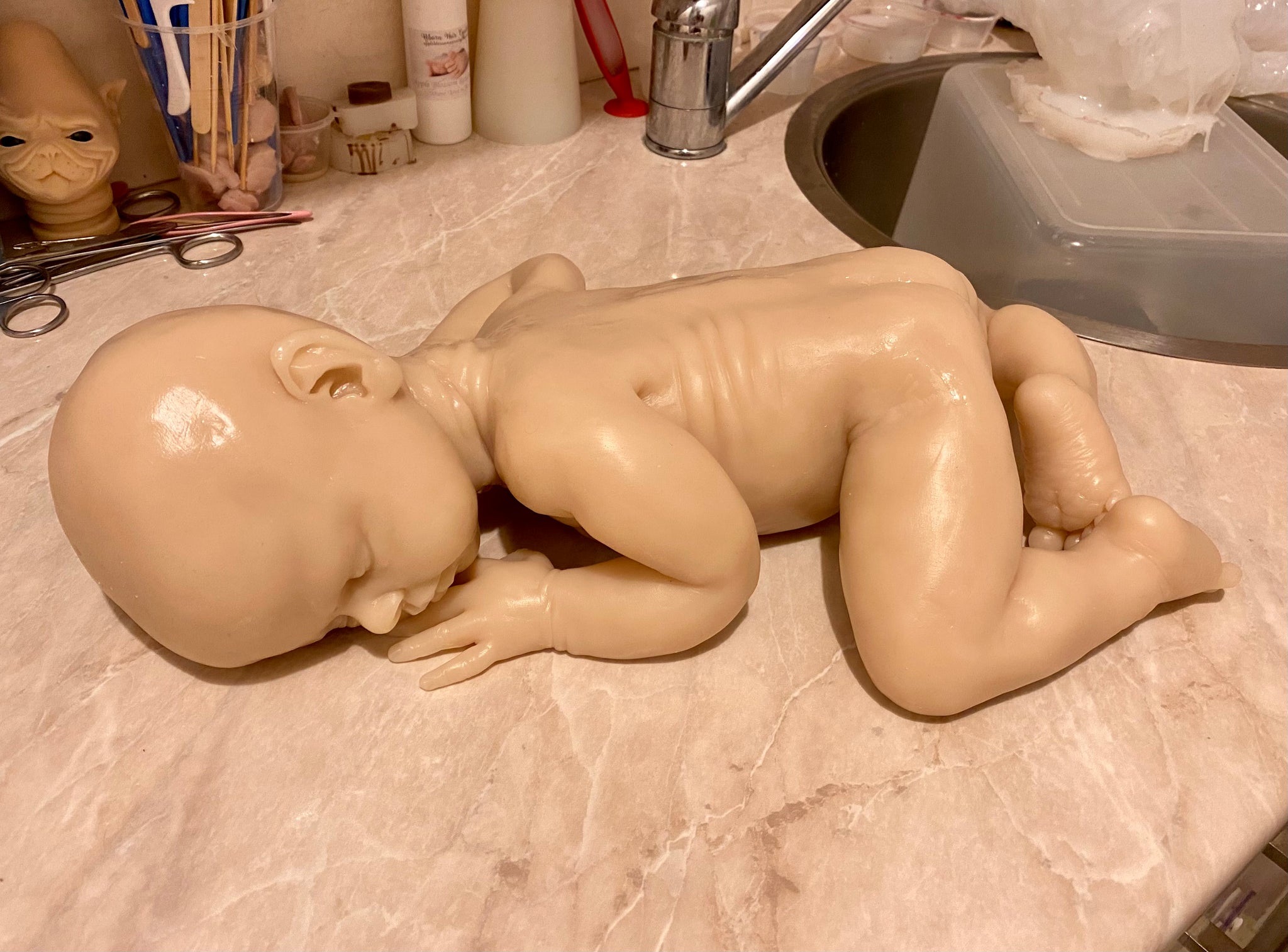 This baby was sculpted by me from scratch, molded, produced in platinum cure silicone blend.