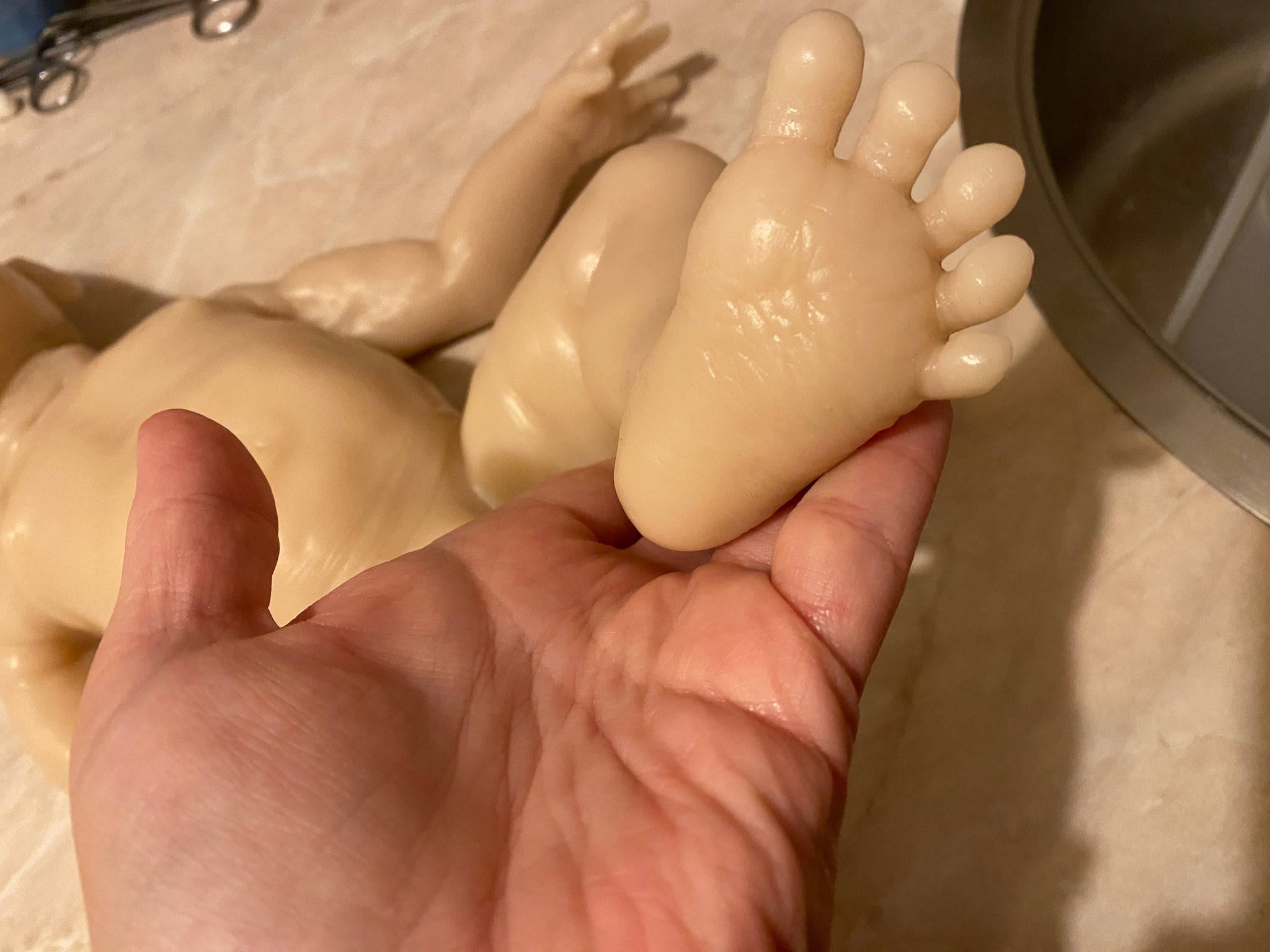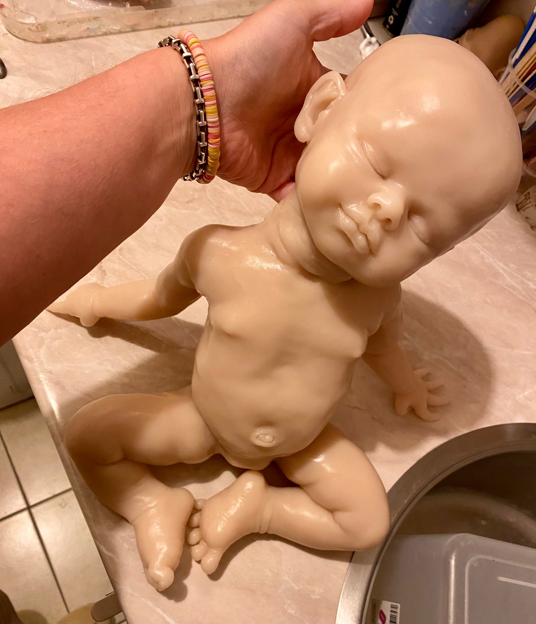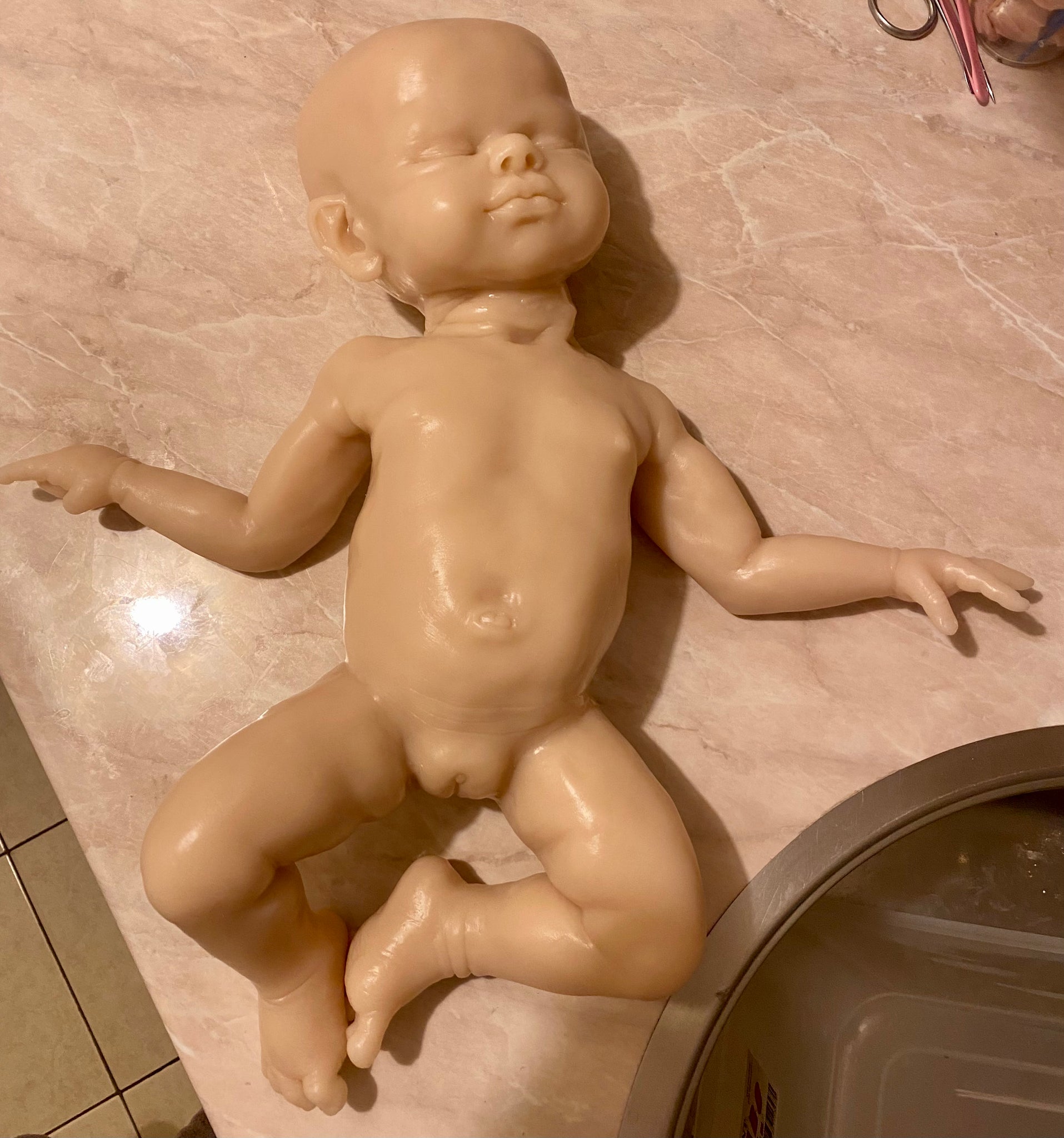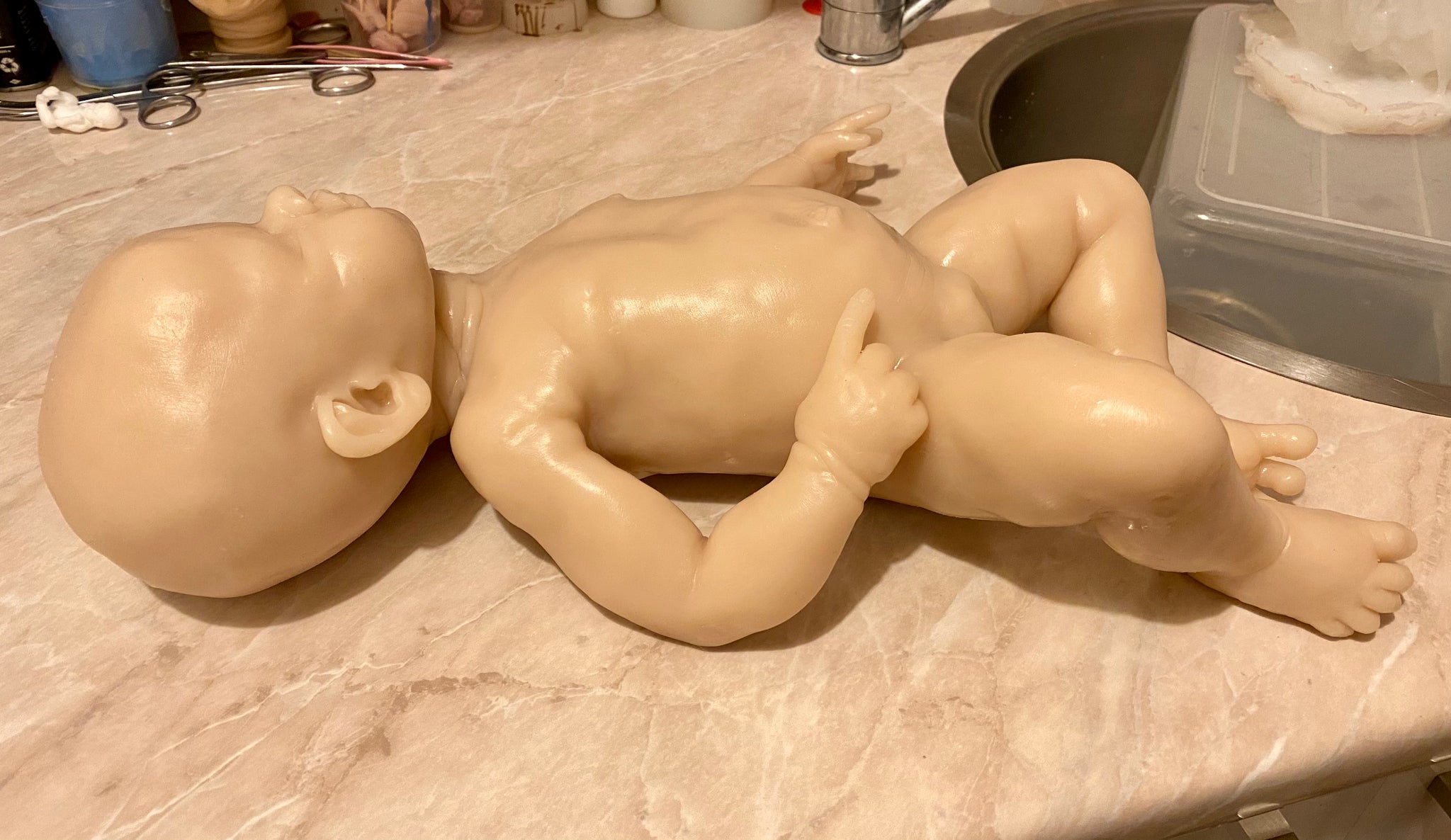 This baby was sculpted by me from scratch, molded, produced in platinum cure silicone blend.