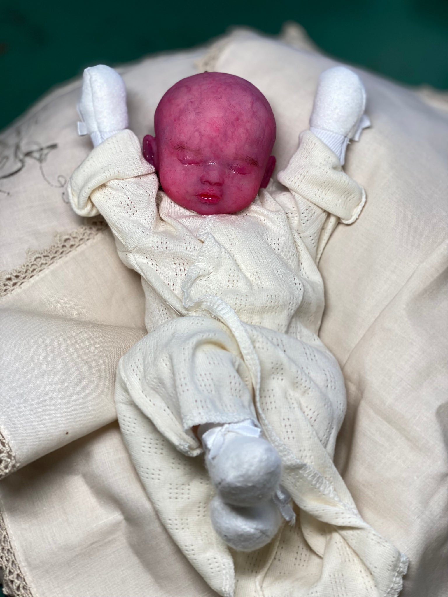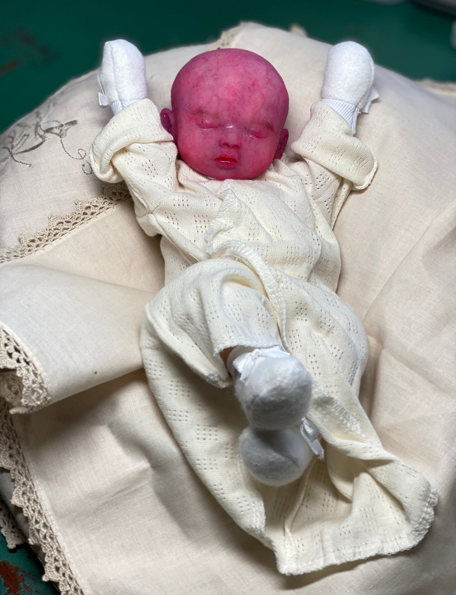 This baby was sculpted by me from scratch, molded, produced in platinum cure silicone blend.