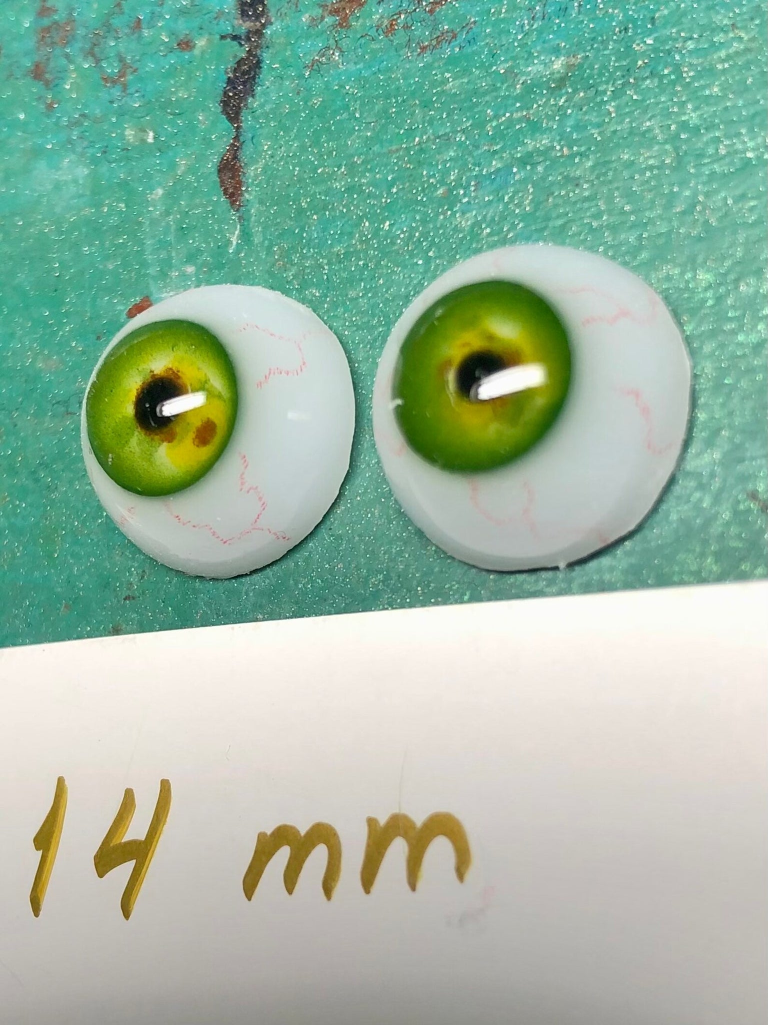 Fully handmade from scratch, hand painted - no prints used (hence not perfectly perfect) first batch of eyes (oil paint, watercolour pensils, resin).