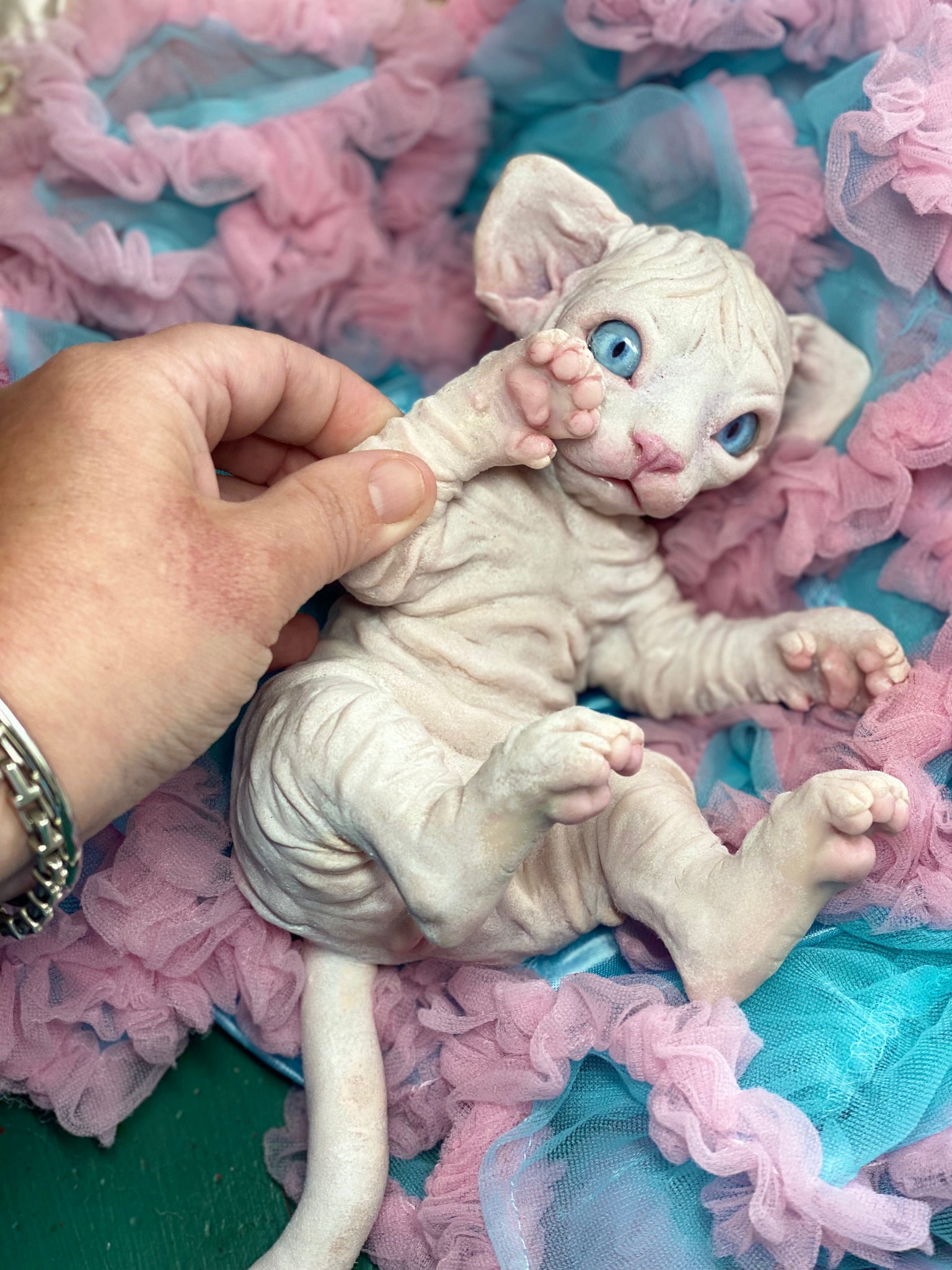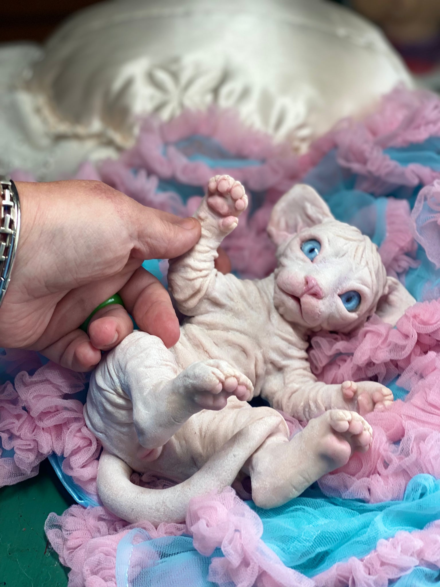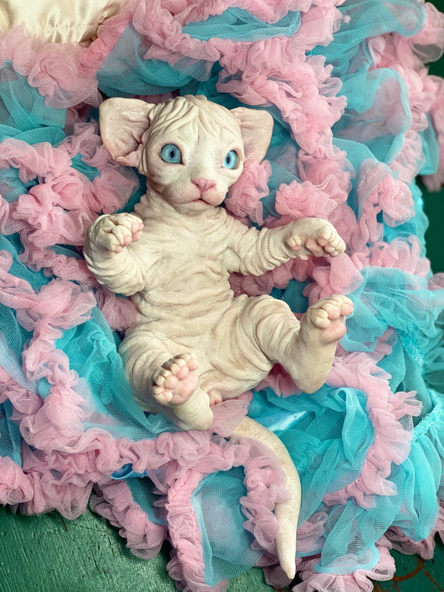 Full body silicone baby kitten sculpted by the amazing Tanya Latashevska  & painted by me. mouth open (takes a preemie dummy), has tongue.