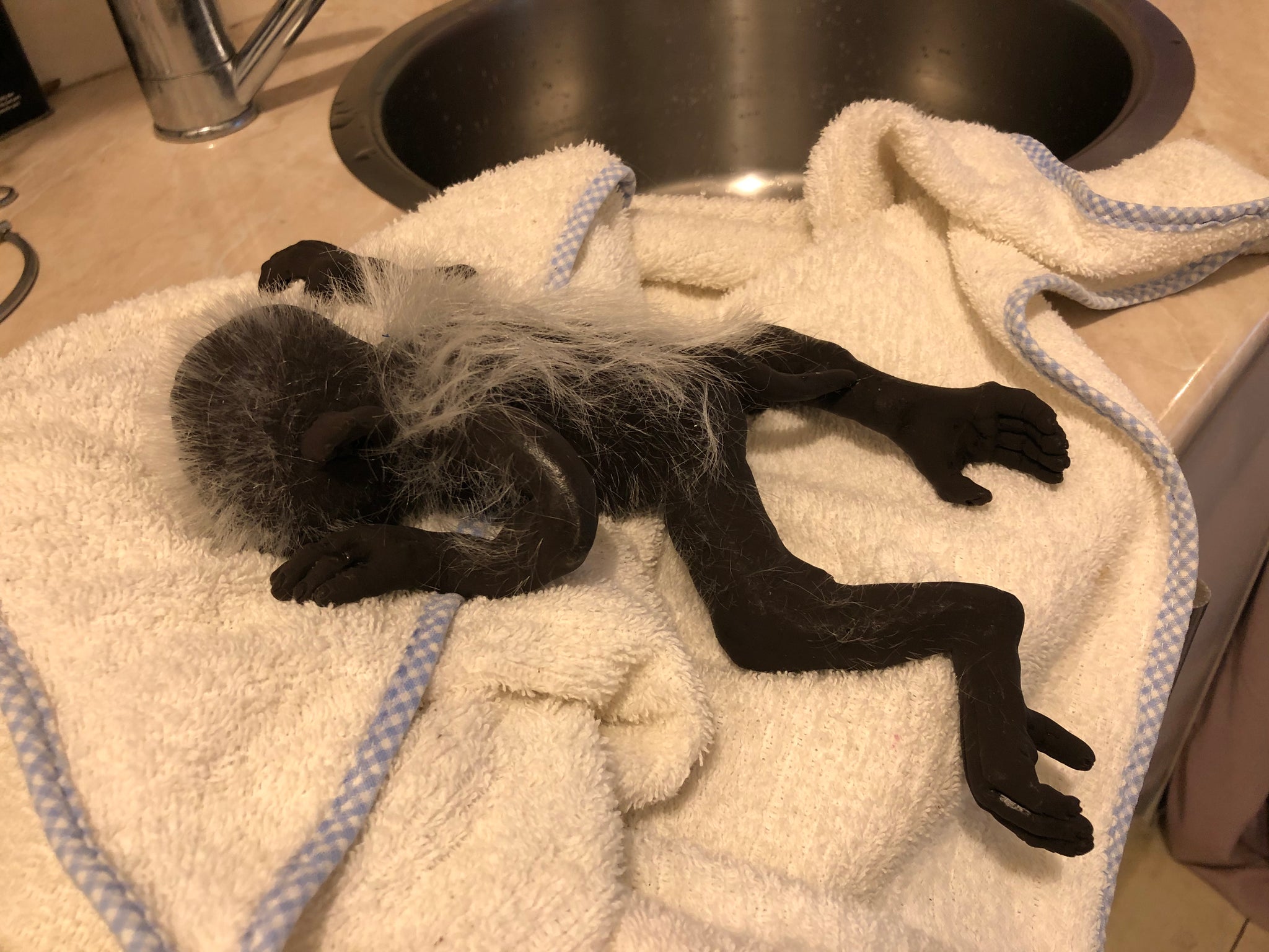 Full body silicone mini sleeping baby monkey in marshmallow soft blend ❤️ Sculpted by me, Nadine Dolotova, with extreme attention to the details, casted in silicone, painted & rooted by me.