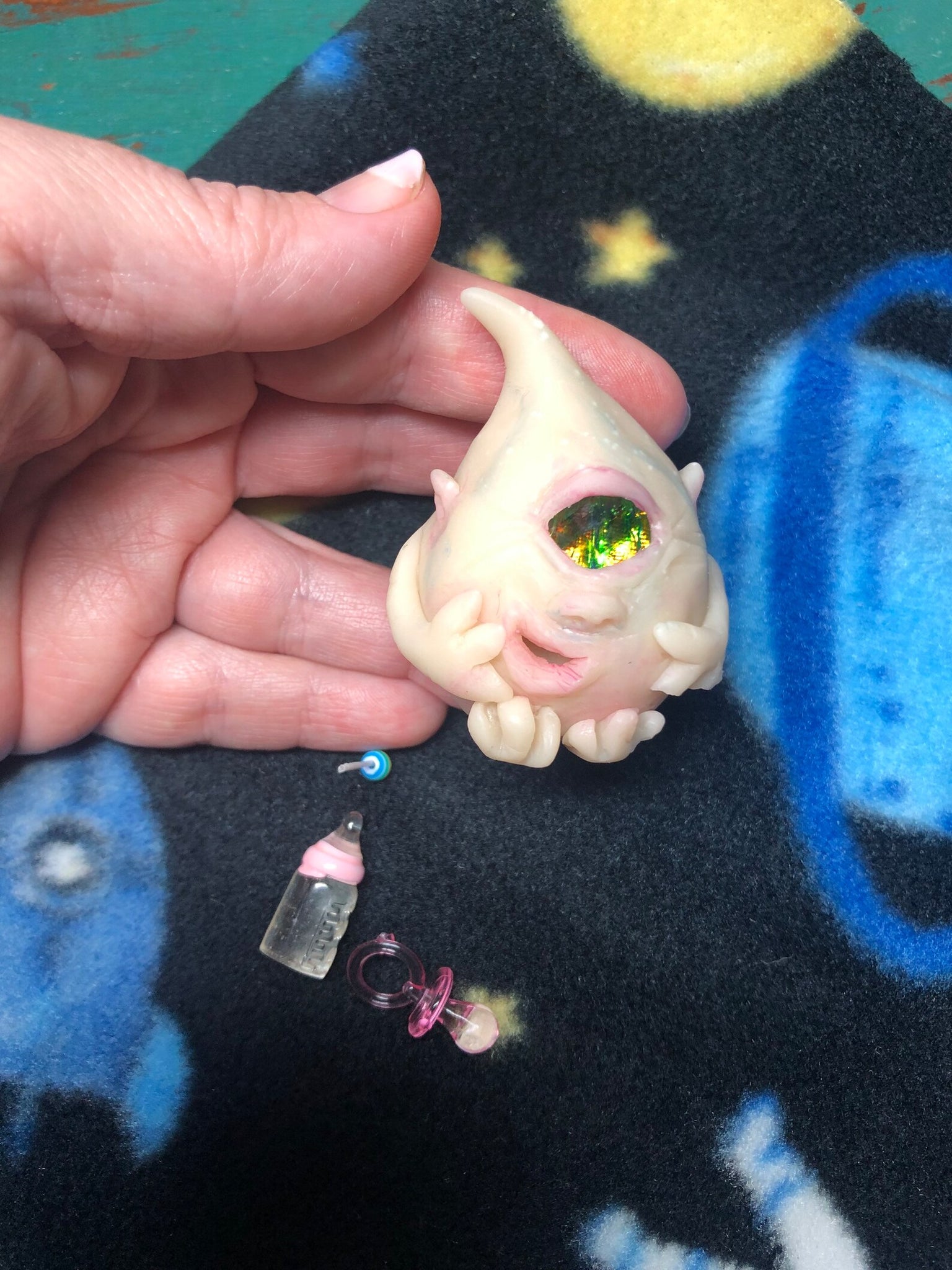 This baby was sculpted from scratch, molded, produced in platinum cure silicone blend by my 8 year old son, Vincent Morgunov.