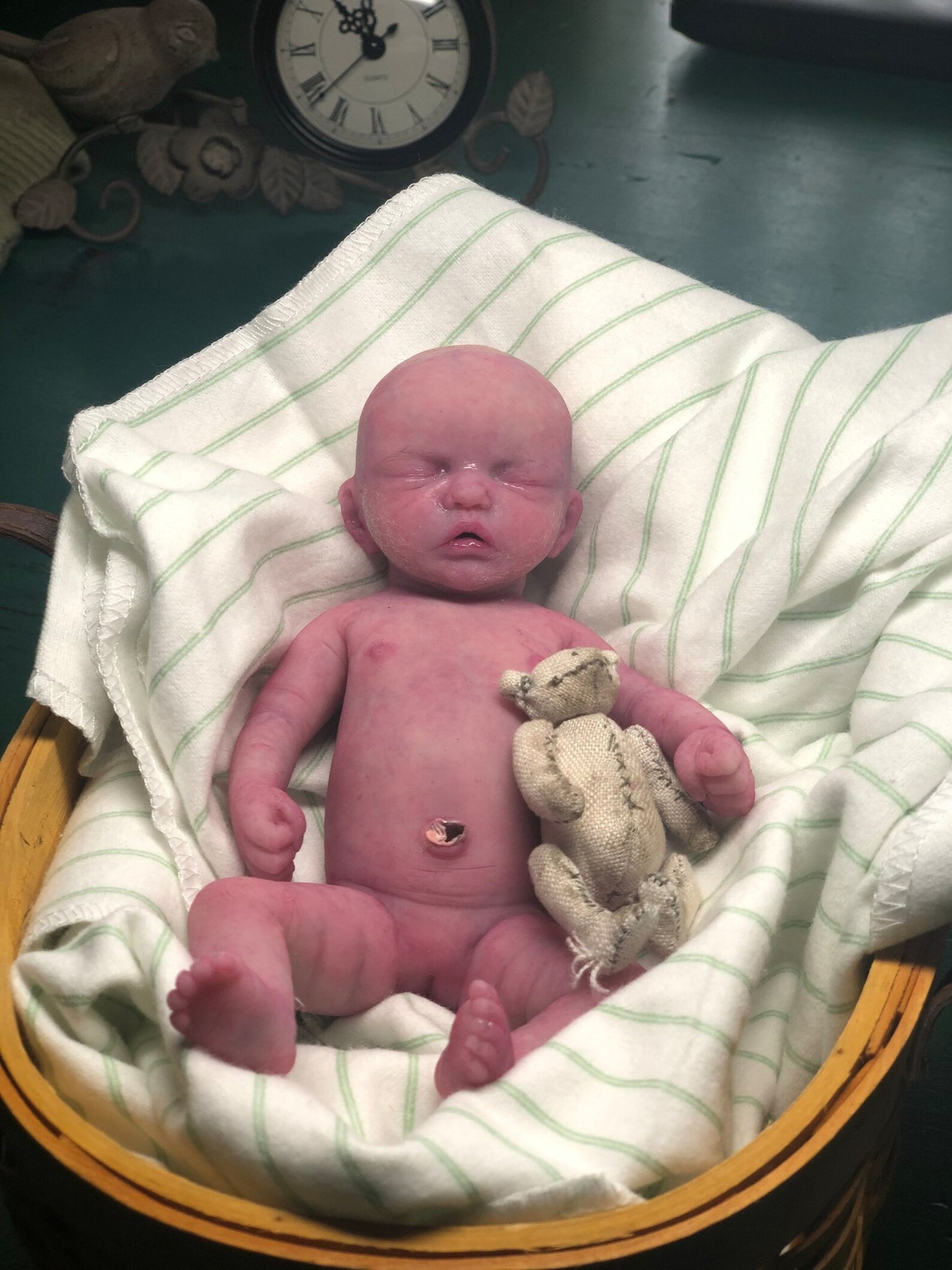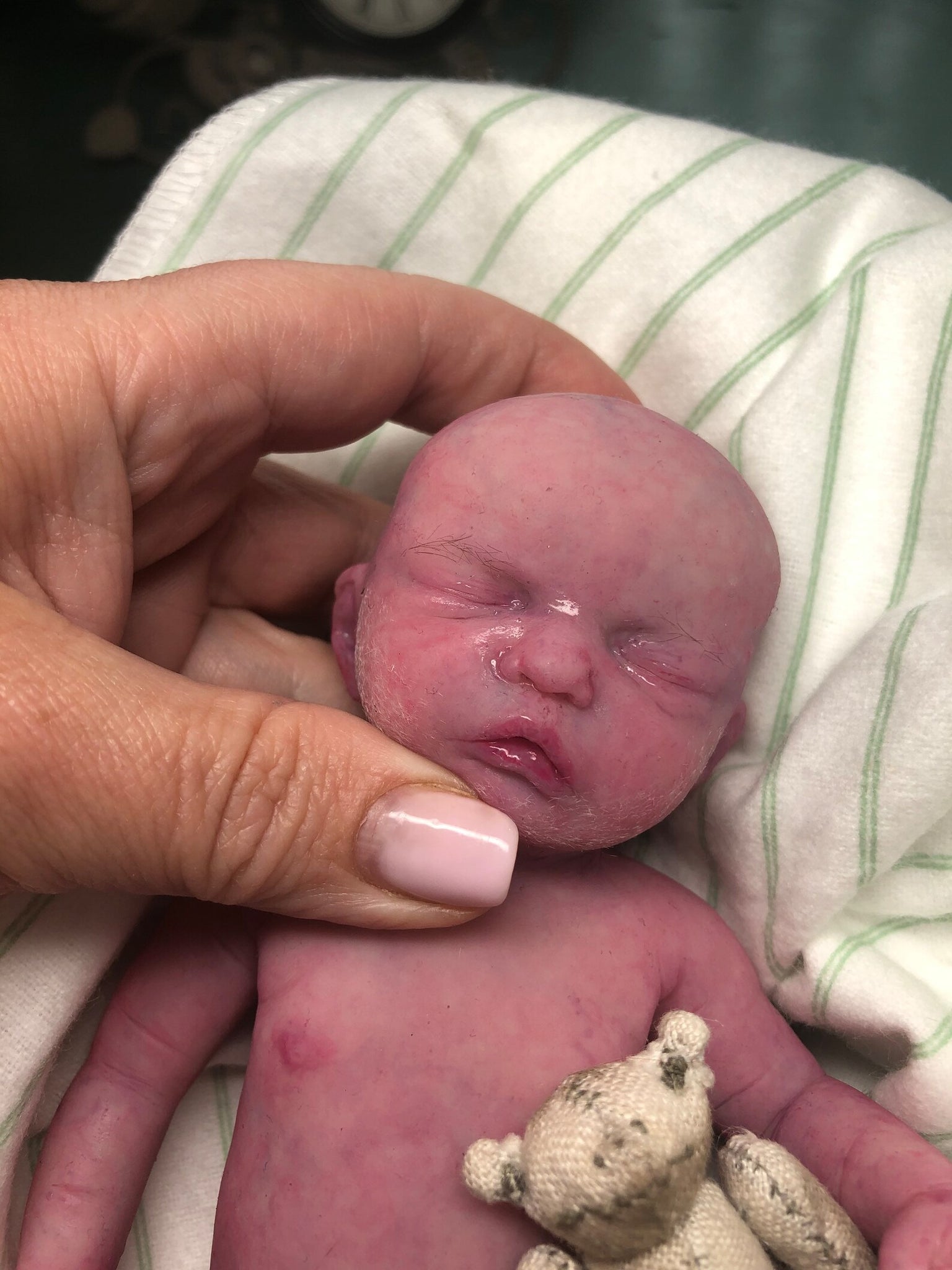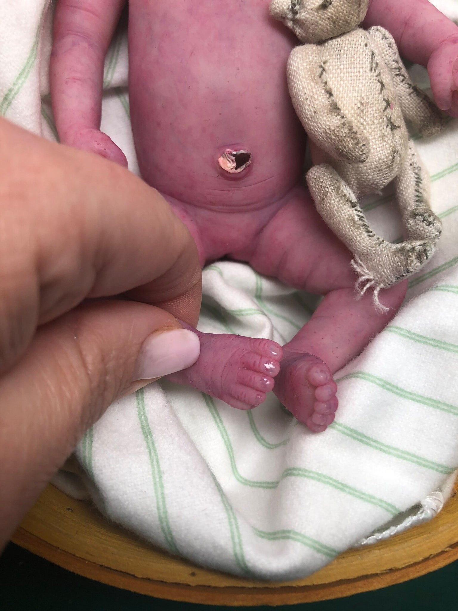 I hope you love her! She is EXTREMELY detailed- photos don’t do the justice unfortunately- she has got separated toes, realistic painted & glazed tongue, belly button stamp, vertix, baby lanugo on cheeks & bum cheeks, veining & micro veining.
