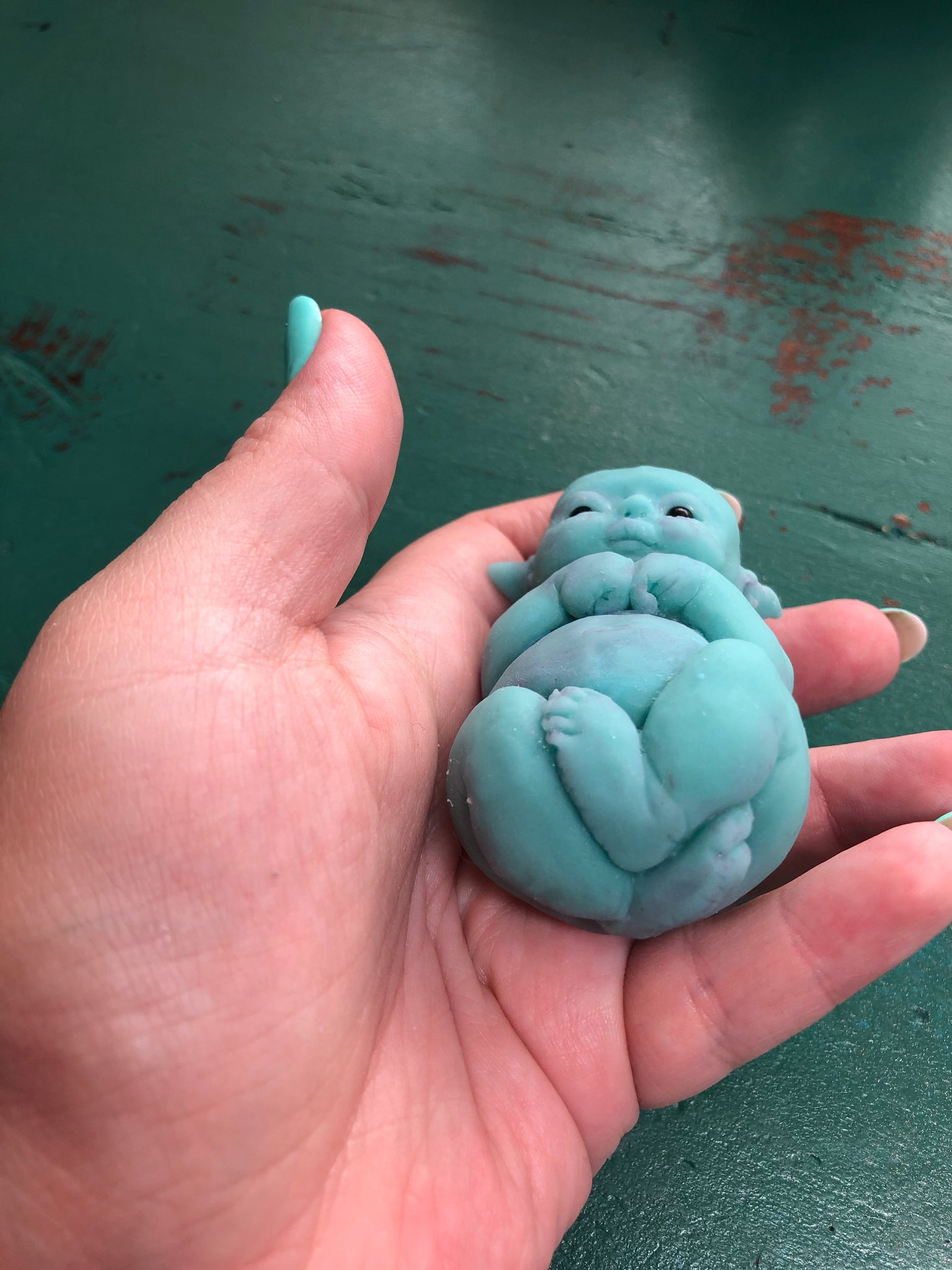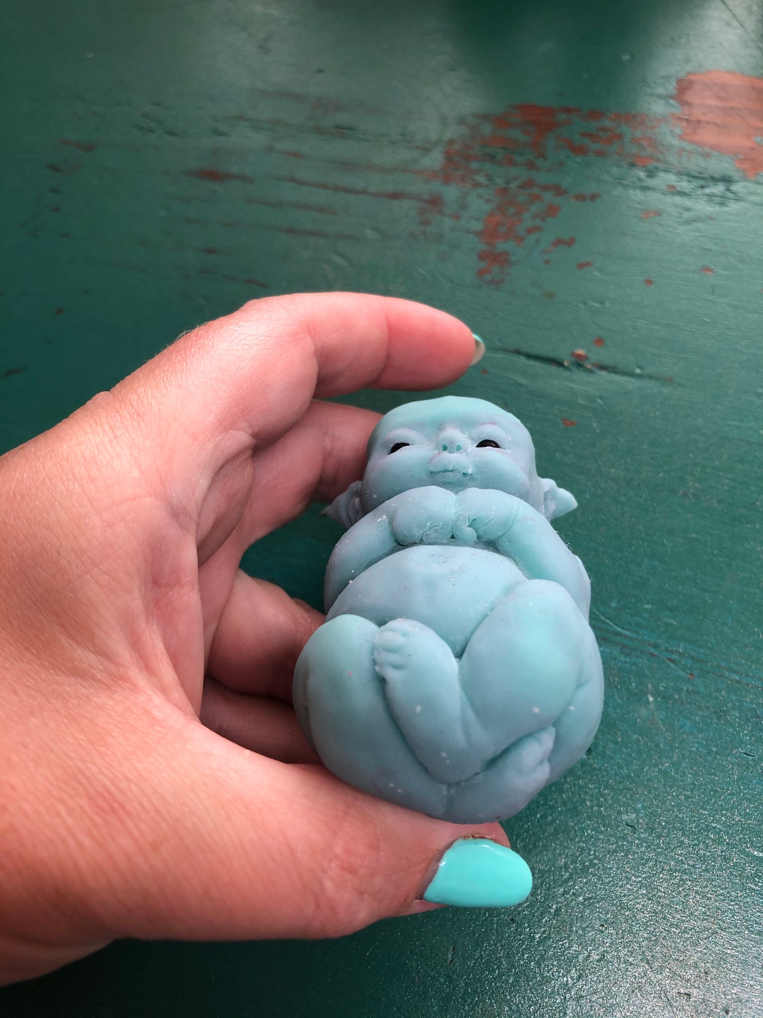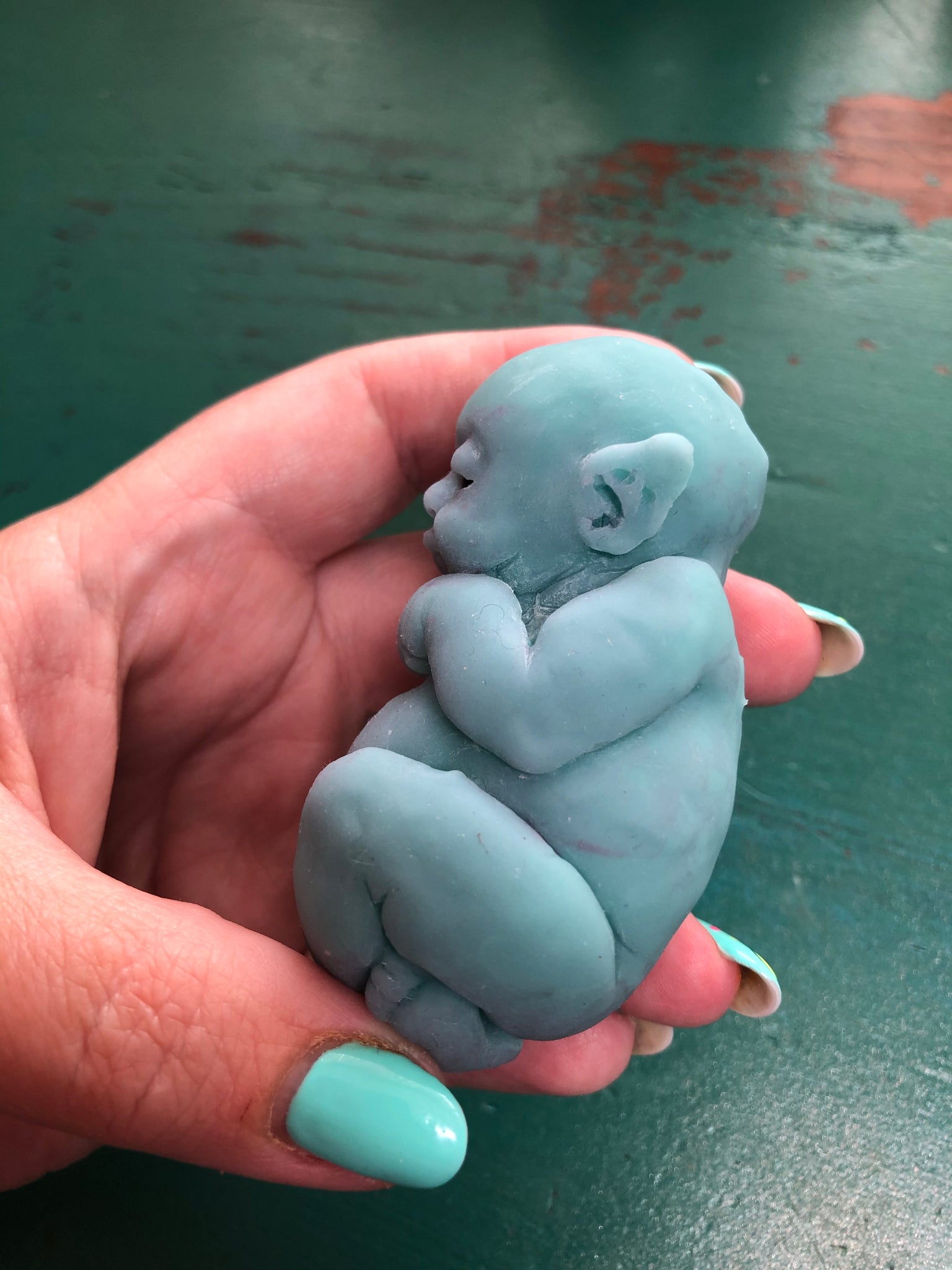 💕💕💕 AVAILABLE 💕💕💕💕 3” full body silicone fantasy elf baby (Kiki sculpt by me) in super soft blend, awake, glow in the dark. LTE of 40 maximum worldwide, sculpted, poured and painted by me, open mouth. Really squishy and soft, like a marshmallow. Please contact me if you need any information or more pictures 😊 She comes with the bottle, dummy, blanket, earrings, COA. http://www.nadinedolotovadolls.com/ .