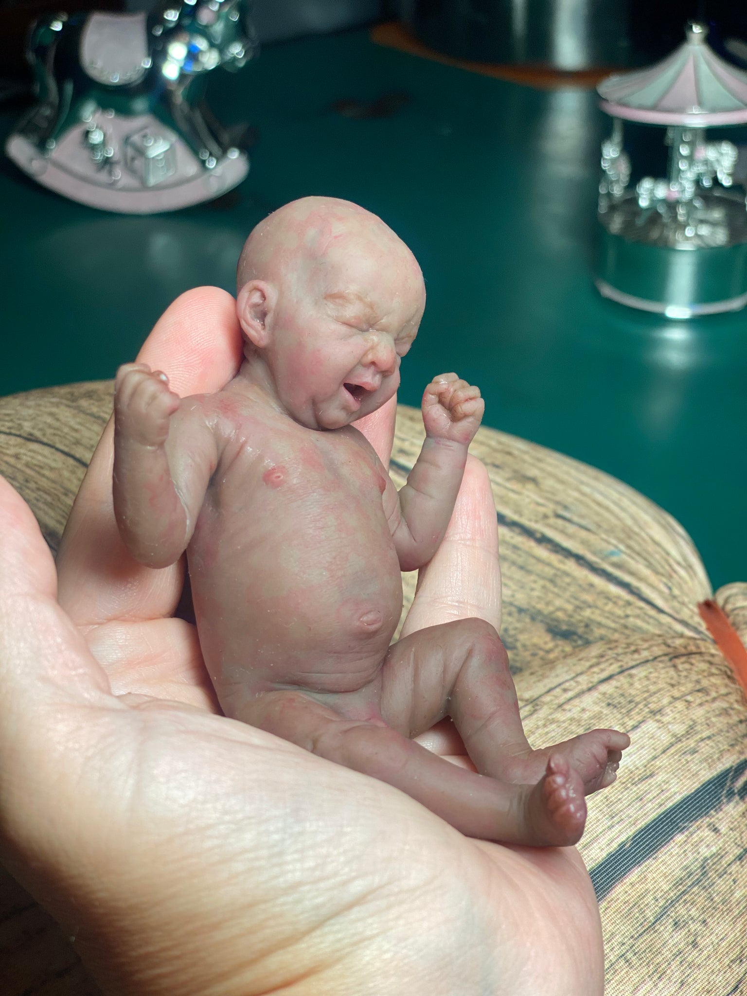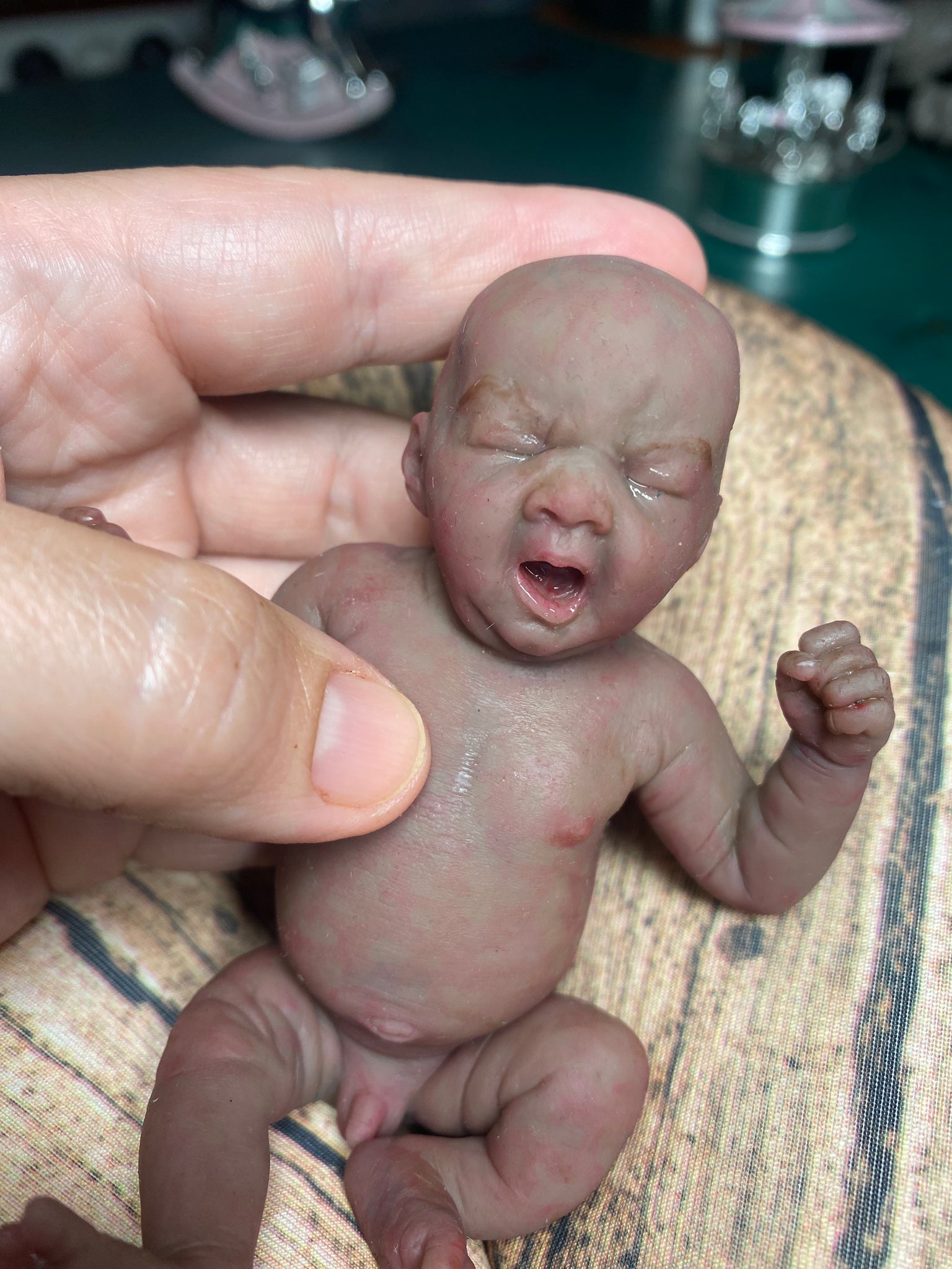 He is extremely detailed sculpting & painting. He has got baby lanugo on the face & bum cheeks ♥️