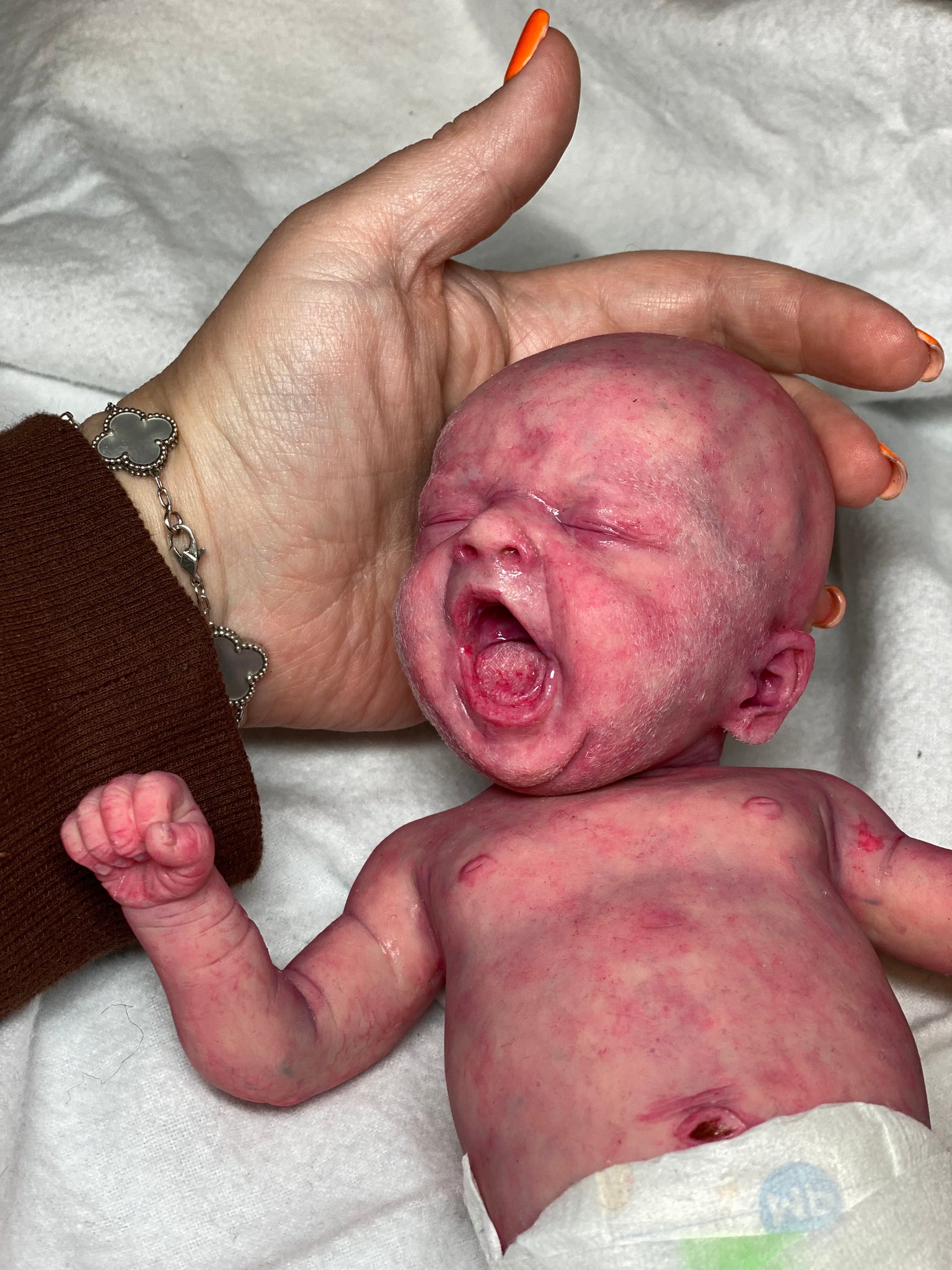 I have brought her to life with extreme attention to the details (mottling (baby “marble” skin), shading, veins, capillaries, applied baby peachy fuzz (lanugo) on cheeks, ears, spine & bum cheeks) - the pictures don’t do the justice unfortunately.