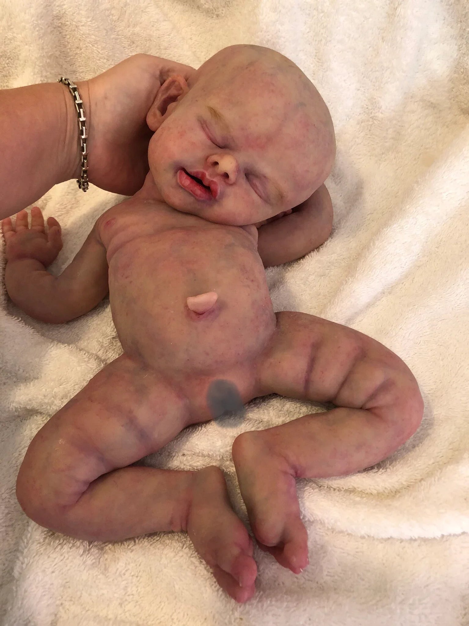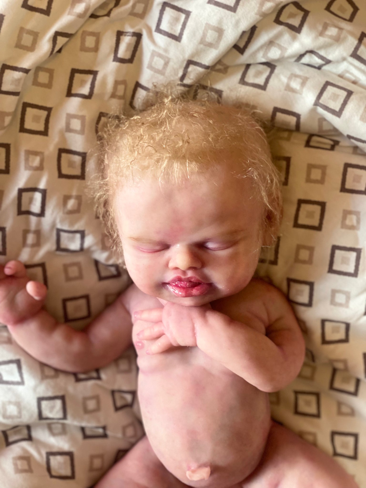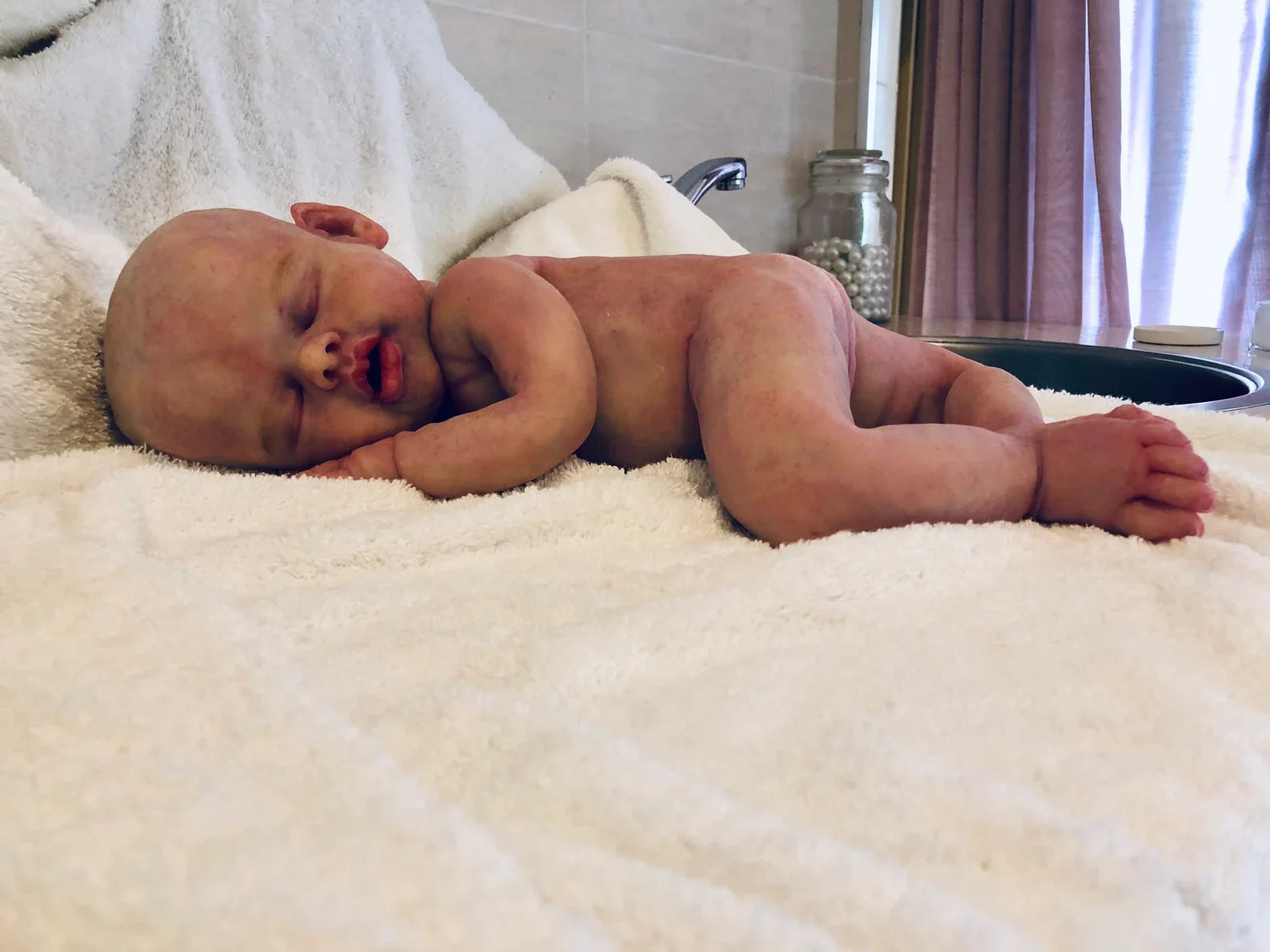This baby was sculpted by me from scratch, molded, produced in platinum cure super soft silicone blend - marshmallow silicone- it is much more realistic & soft, softer than ecoflex 20 & ecoflex10.