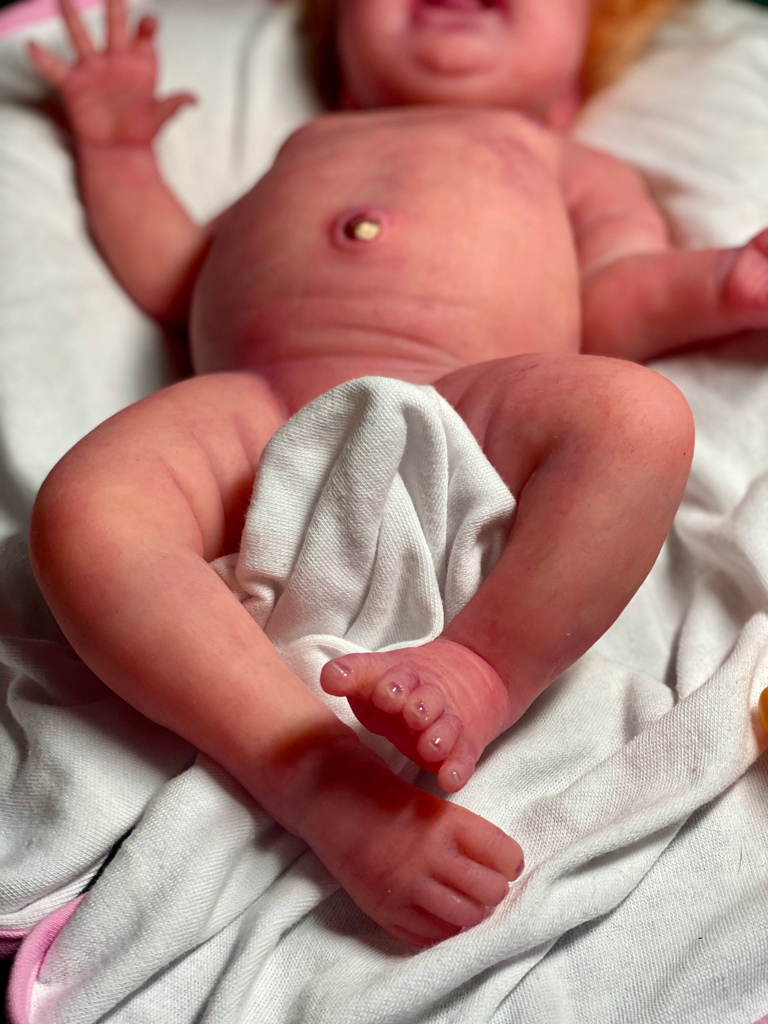 I have brought her to life with extreme attention to the details (mottling (baby “marble” skin), shading, nail nail tips, veins, capillaries, baby peachy fuzz (lanugo) on cheeks, ears & bum cheeks) - the pictures don’t do the justice unfortunately.