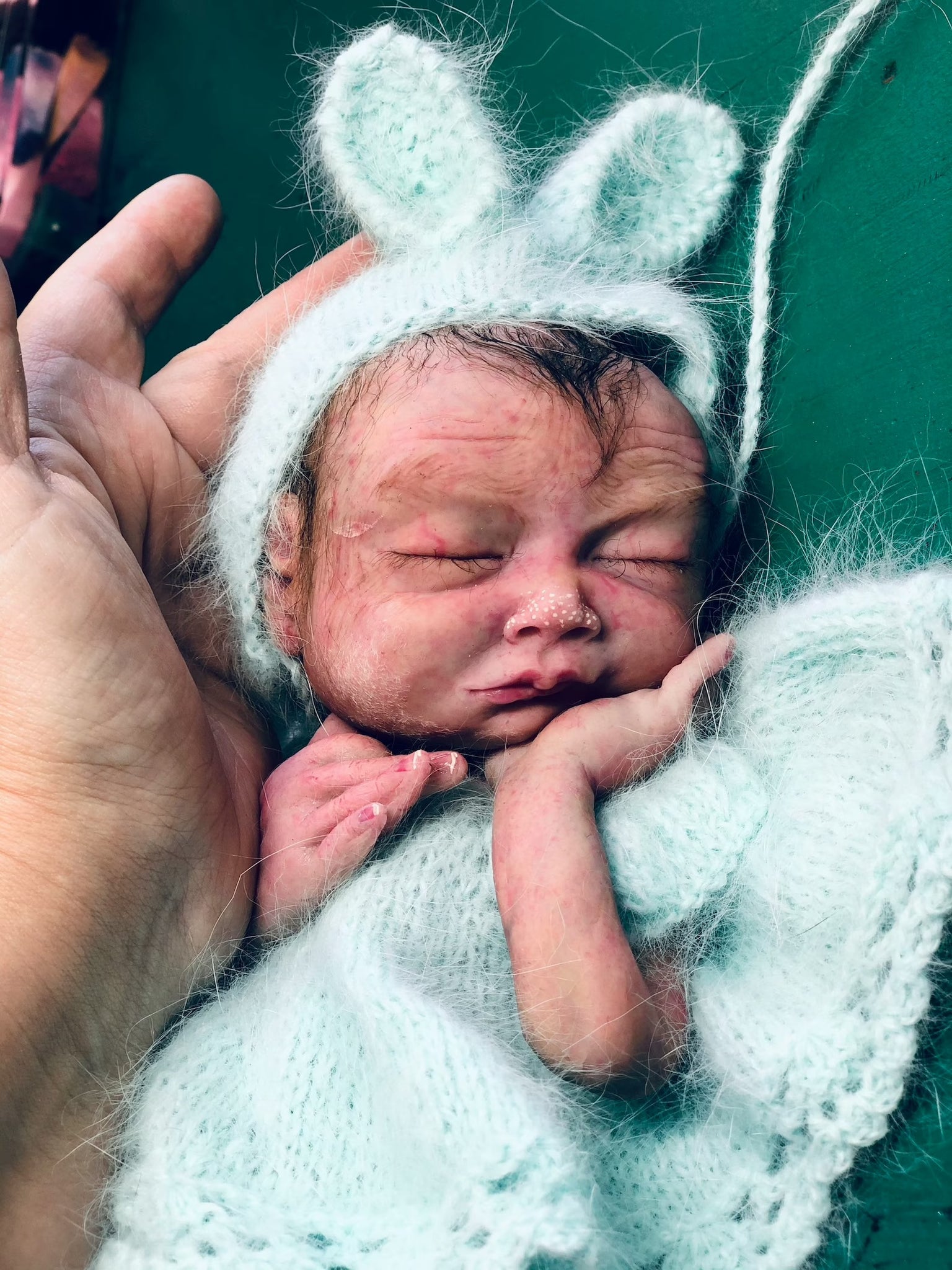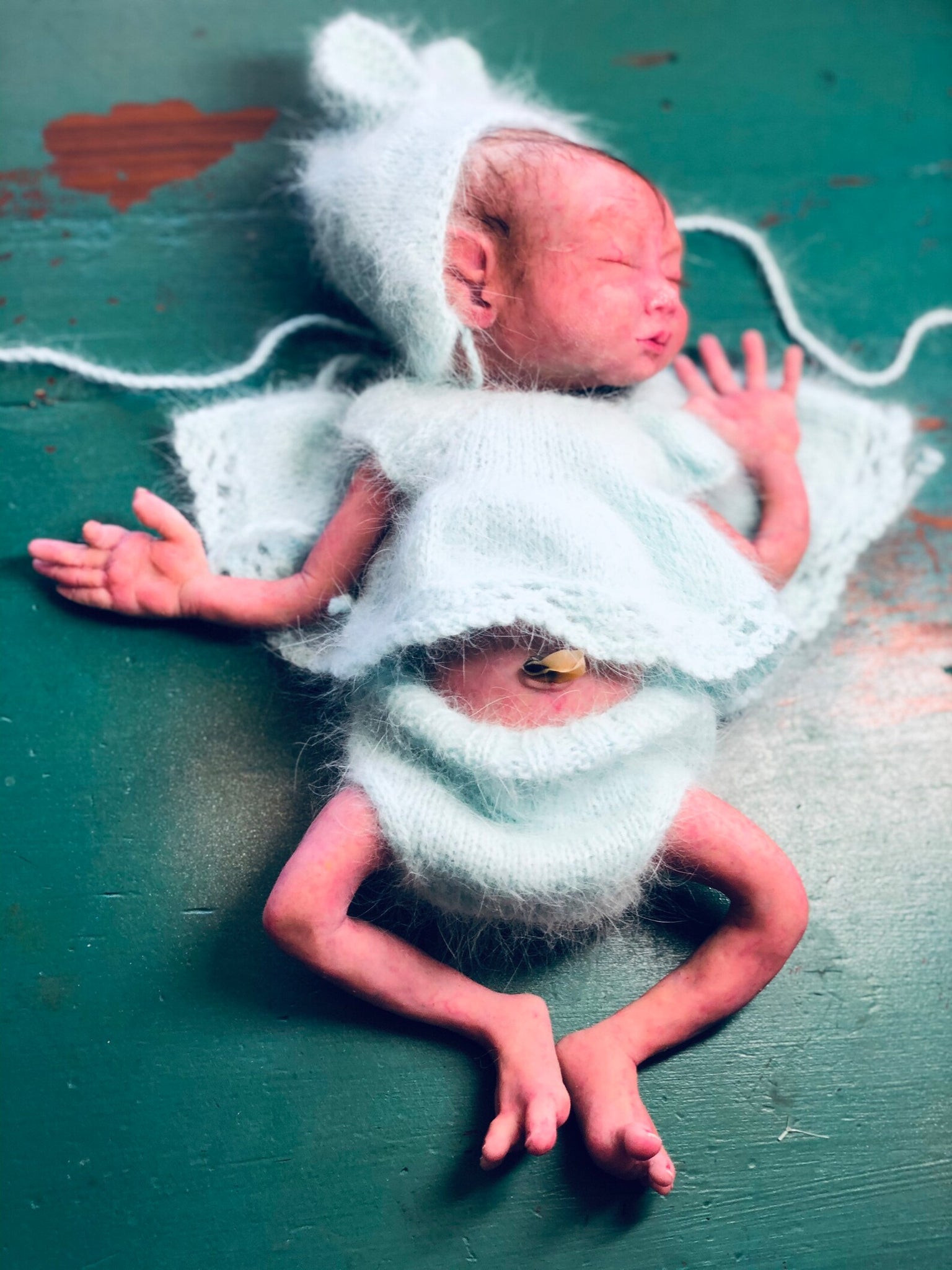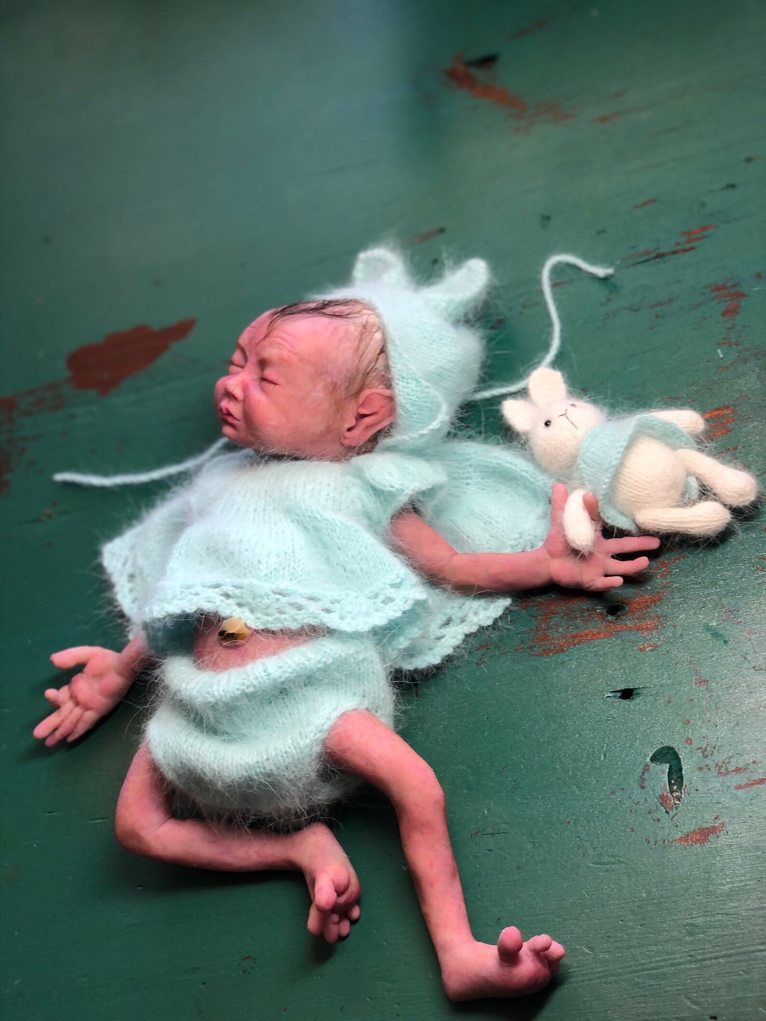 Full body silicone premature baby 12” by Nadine Dolotova is ready to go home