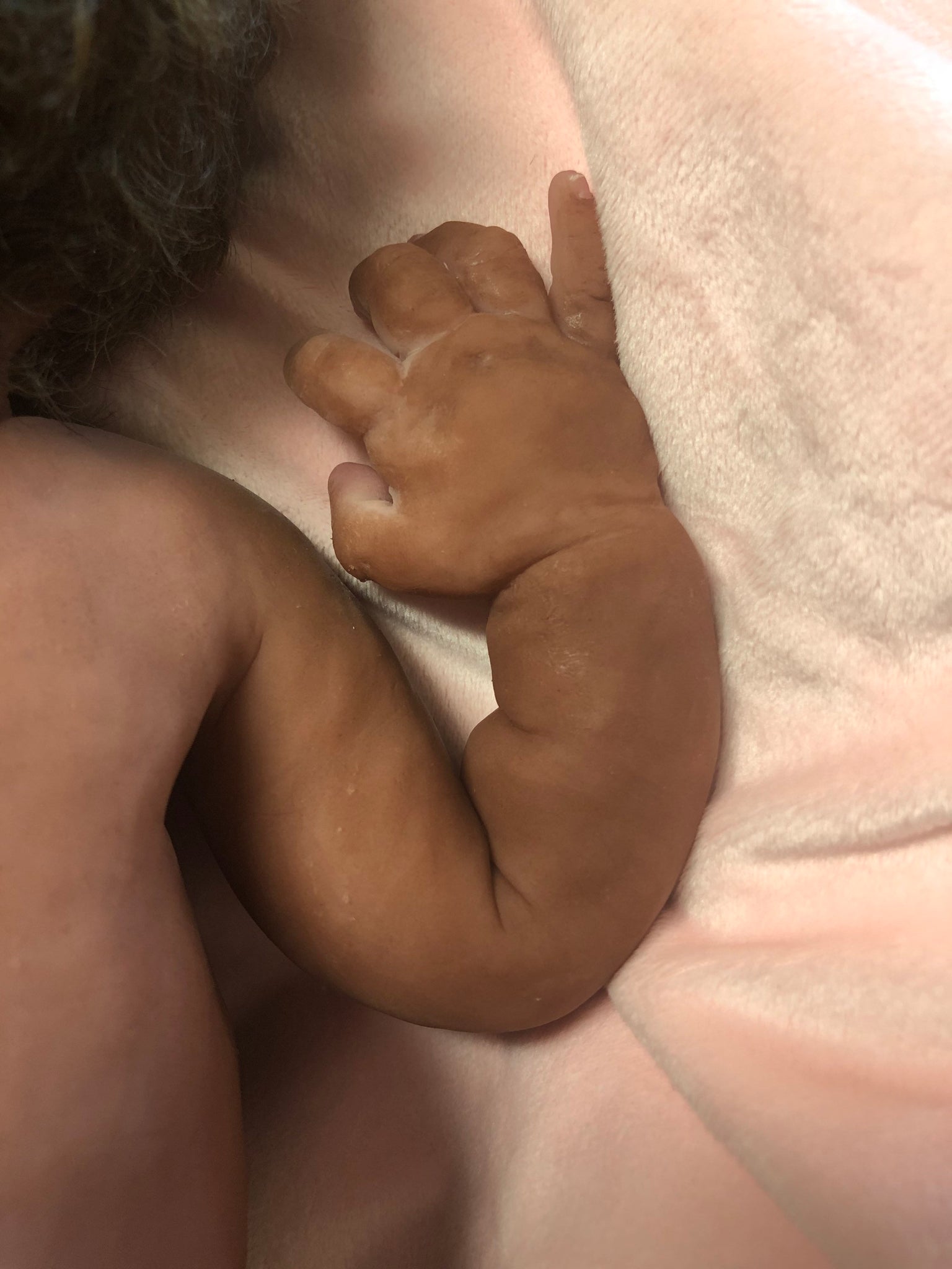 PLEASE NOTICE THAT THIS BABY WAS ADOPTED BUT I CAN RECREATE ONE FOR YOU (any skin colour, gender, hair colour- takes around 5-8 weeks) ❤️👶🏾❤️ Here is a Video of her (COMPLETED BABY YOU WILL RECEIVE): https://www.facebook.com/2304719746472866/posts/2671936049751232/?vh=e&d=n