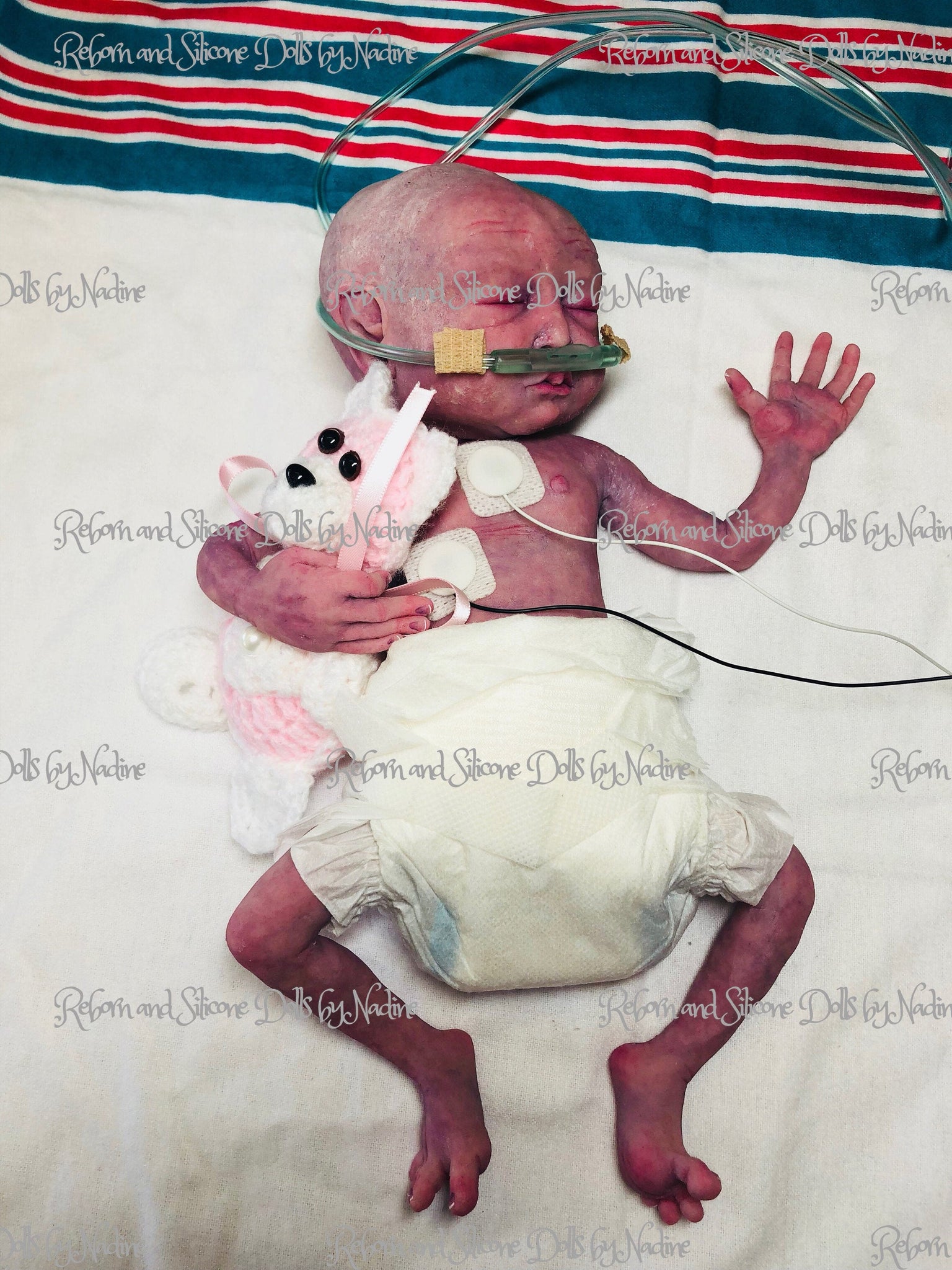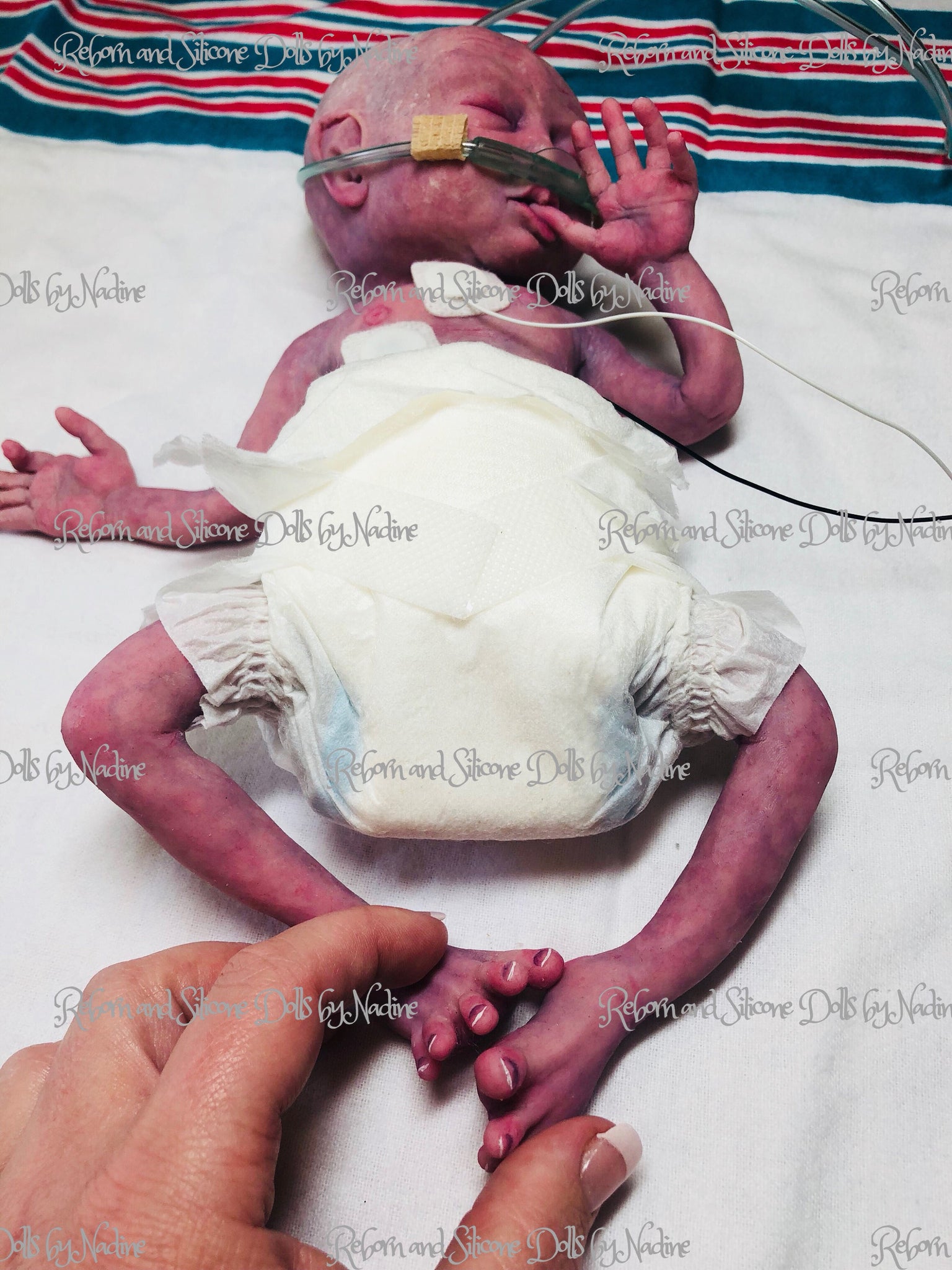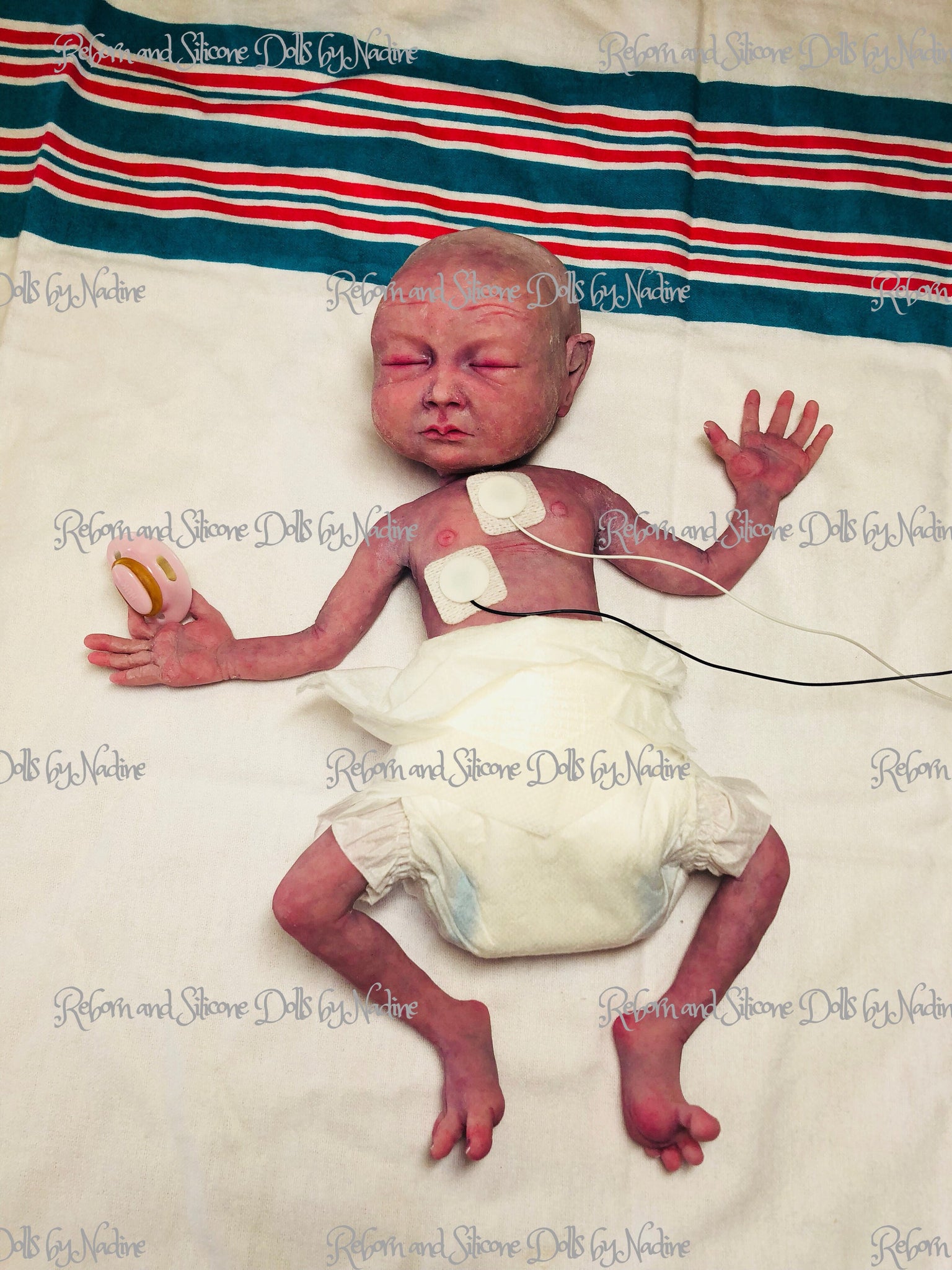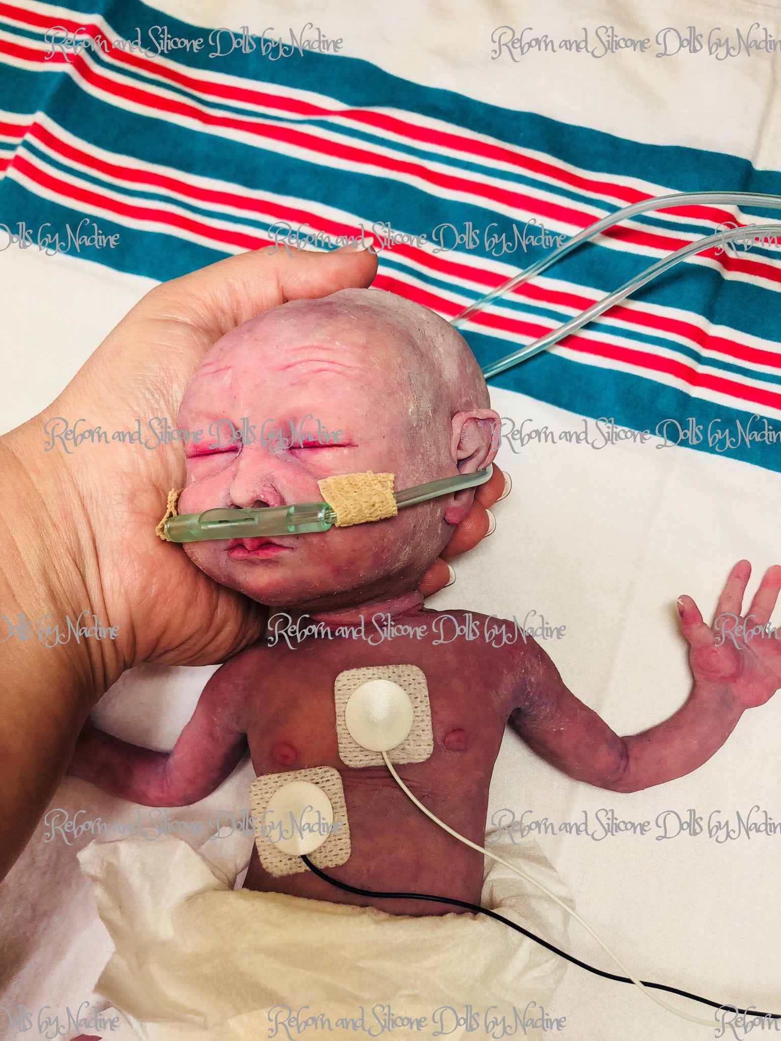 PLEASE NOTICE THAT THIS BABY HAS BEEN ADOPTED BUT I CAN RECREATE HER FOR YOU ❤️ Creating this tiny preemie full body silicone baby girl I have tried my best to make her as realistic as possible. She is a just born ultra premature baby (approximately 26-28 weeks of gestation), just over 700 grams, sculpted, molded & poured by me in super soft platinum cure silicone blend (way softer than eco 20, really squishy like a marshmallow) with some flocking added (a few colours), which created a 3D effect even before painting. She is painted in purplish colour to create that just newborn look, with Vertix effect (it’s the white stuff that covers the womb & right after birth). I also gave her skin lanugo effect while matting her (it’s baby peach fuzz, when you feel her cheeks, shoulders and along the spine it feels like a real baby, otherwise her body is silky smooth). She has an open mouth (takes a preemie pacifier, provided), can be rooted for extra $150, I can also give her eyelashes (free of charge). If only I could give you all the opportunity to hold her - it’s an amazing feeling- she just melts in your arms 💖💖💖 Full body silicone baby Collette 12” with legs stretched 1.5 pound (she was sculpted, moulded & casted by me in super soft platinum silicone blend, painted with silicone paints and matted with SAM silicone matting powder). Her nails, lips, inside of the ears and nose, eyelids are glazed to add her realism. She is painted as a freshly born baby, with adorable tiny skin imperfections (milia, pimple, veins & capillaries, birth stroke). She is extremely realistic & lifelike and also suuuper soft, squishy & posable, she literally melts in your arms 💕 Her skin has 3D effect due to the different colour flocking added to the silicone mixture. Has rooted eyelashes (on customers request) & open mouth (no tongue or gums), takes preemie pacifier & bottle. Has hair (you get to choose hair colour). Umbilical cord with clip can also be added on request for additional $35, can also add placenta for extra $50. She will bring blanket, dummy, bottle, teddy, COA with my signature, outfit of my choice, a few accessories if my choice, teddy, a sample of silicone matting powder for you to use, disposable nappy, nasal tube, photo props heart monitors pictured (3 stickers with wires). VIDEOS OF COLLETTE Full body silicone premature baby 12” by Nadine Dolotova is ready to go home https://youtu.be/XtmFoC4kwf4 Full body silicone boy getting ready to go home ❤️❤️❤️ https://youtu.be/fKruOfGtOG8 Full body silicone 12” baby girl Collette by Reborn & Silicone dolls by Nadine https://youtu.be/D85r459MCrQ Full body silicone 12” baby boy Caleb by Reborn & Silicone dolls by Nadine https://youtu.be/_EJqE1OUwWE FULL BODY SILICONE BABY COLLETTE 12” by Nadine Dolotova https://youtu.be/xaf6Q6efnEw Please refer to my website for the full version of terms and conditions as well as for MUCH MORE pictures of her as Etsy only allows 10 & it’s impossible to show all her detailing in 10 pictures. http://www.nadinedolotovadolls.com/