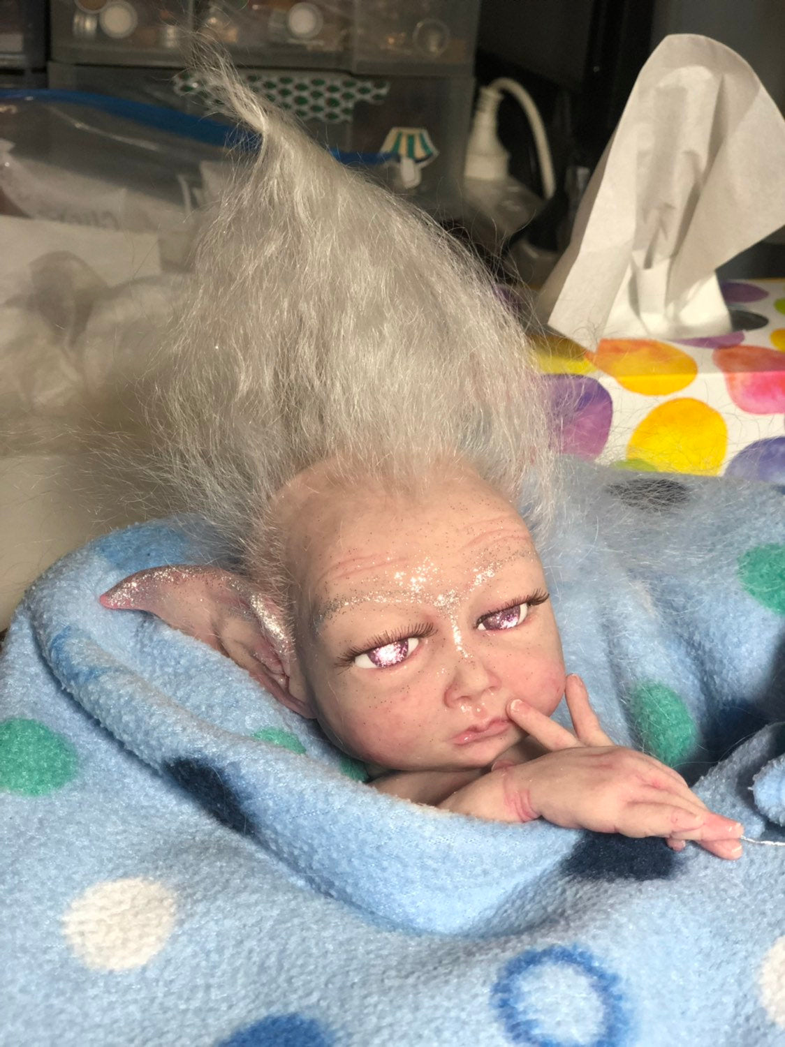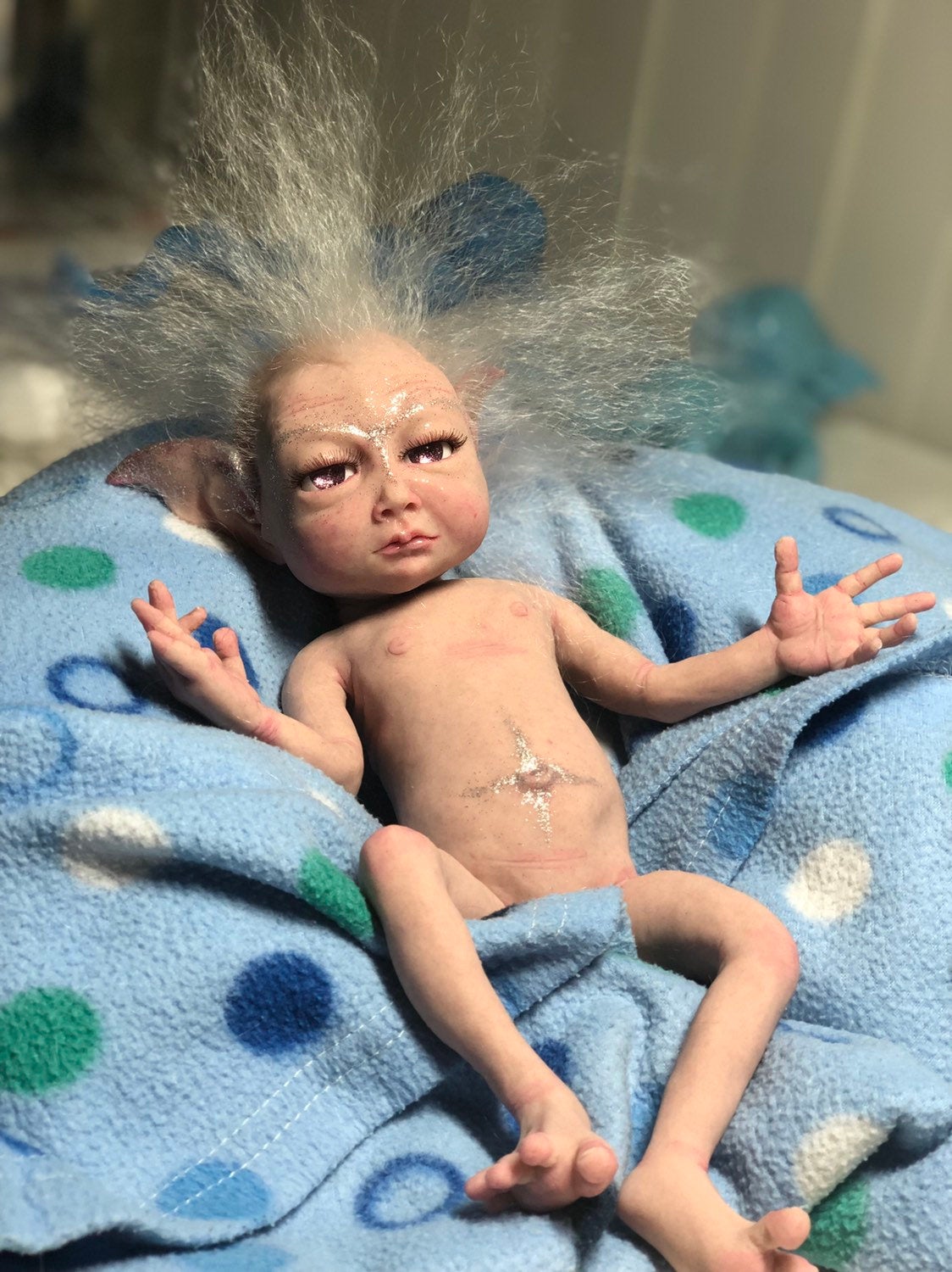 Full body silicone snow fairy sculpted, molded, poured in soft platinum silicone blend & painted by me.
