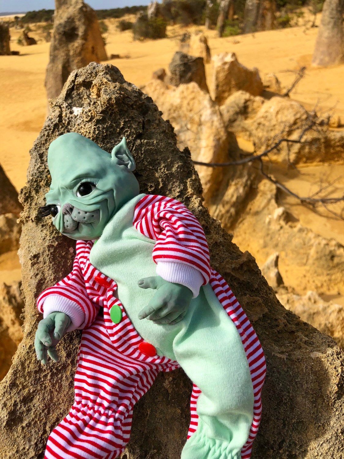 This listing is for the finished (painted, matted, eyelashes, glass eyes) Grinch inspired fantasy baby is SUUUPER soft silicone blend (and I mean it 🤣🤣🤣). He is an anatomically correct baby boy. Besides he glows in the dark 👌🏻 Limited edition (40 maximum worldwide) Please welcome this little grump - Grinch inspired 11” baby , sculpted, casted in silicone by me, Nadine Dolotova. Eyes are open, mouth open, takes a premature pacifier. he is poured in my super soft platinum cure silicone mix & is as soft as a marshmallow 🥰🥰🥰 VIDEO 🎥 Full body silicone fantasy babies available from artist Nadine Dolotova https://youtu.be/AYDwAmBWObs Grinch inspired full body silicone baby by Nadine Dolotova https://youtu.be/jIzkqAmfIXE You can find reviews and feedback on Facebook:https://www.facebook.com/Reborn-and-Silicone-Dolls-by-Nadine-Dolotova-2304719746472866/ Insta: @nadine_dolotova www.etsy.com/au/shop/ArtByNadineCreations/items Youtube:https://www.youtube.com/channel/UCTk93und15AR3AJGrytbu3w?view_as=subscriber